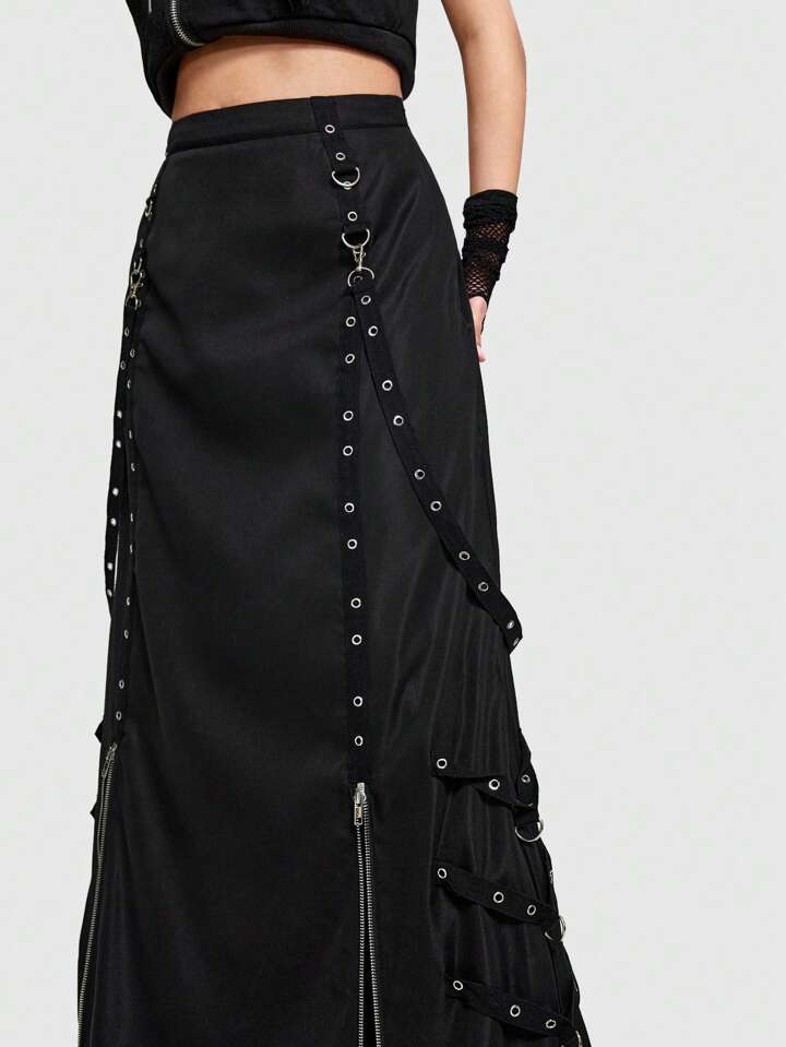 Grunge Punk Falda unicolor con ojal con diseño de cremallera