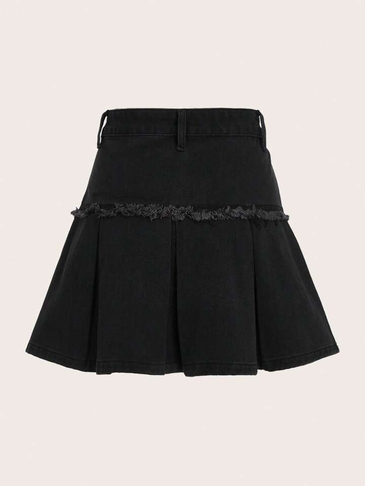 Grunge Punk Falda en mezclilla unicolor bajo crudo fruncido