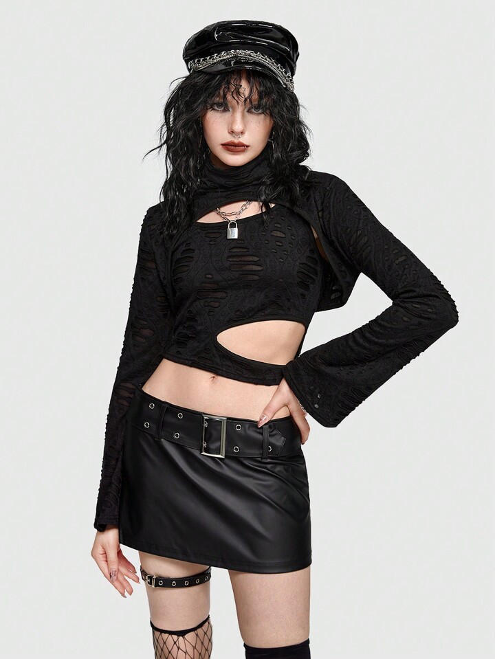 Grunge Punk unicolor Top súper crop & con abertura Top de tirantes