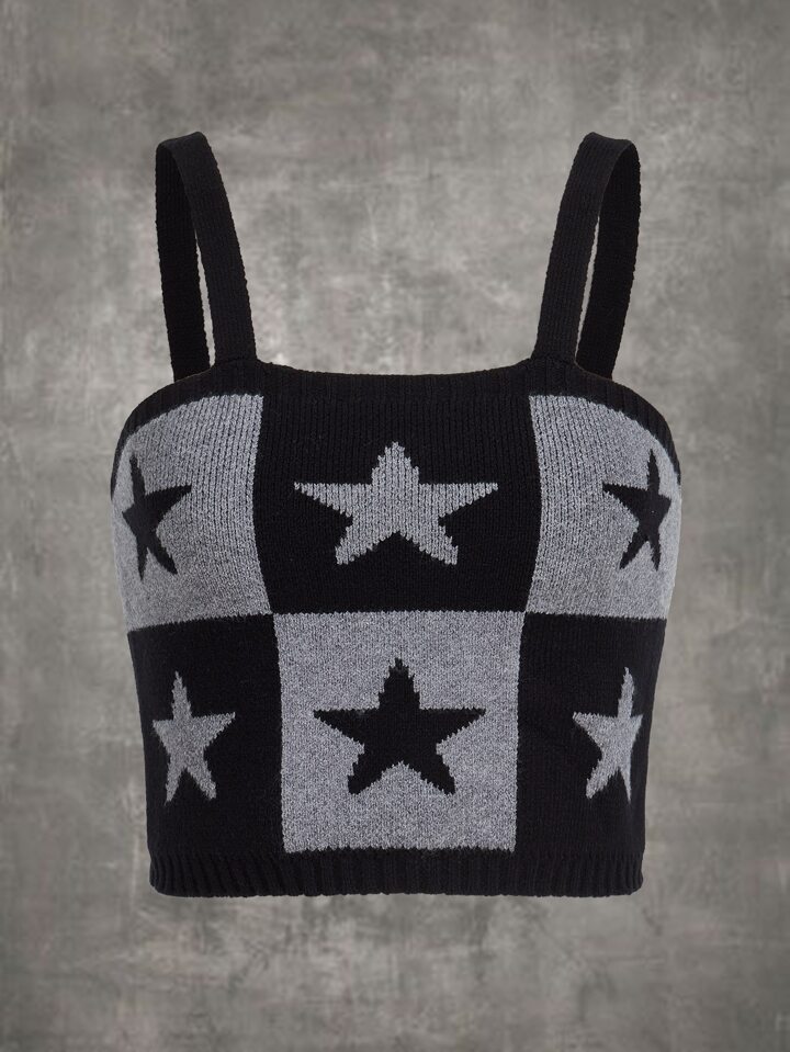 Grunge Punk Top tejido de tirantes con patrón de estrella
