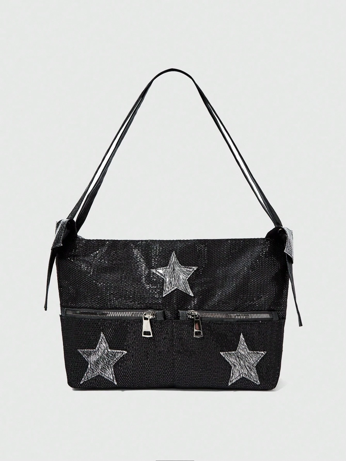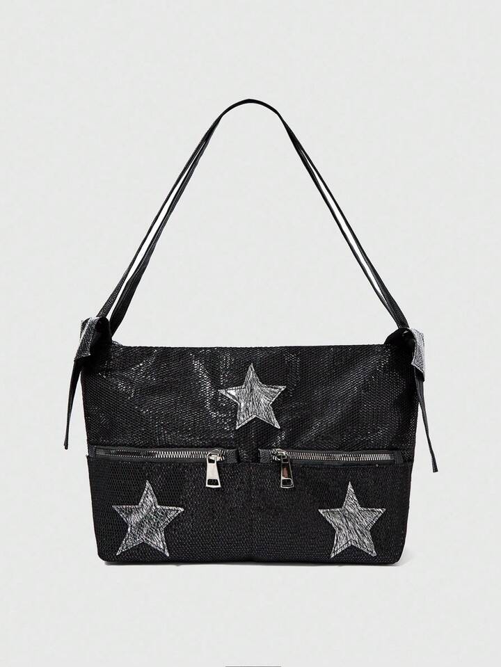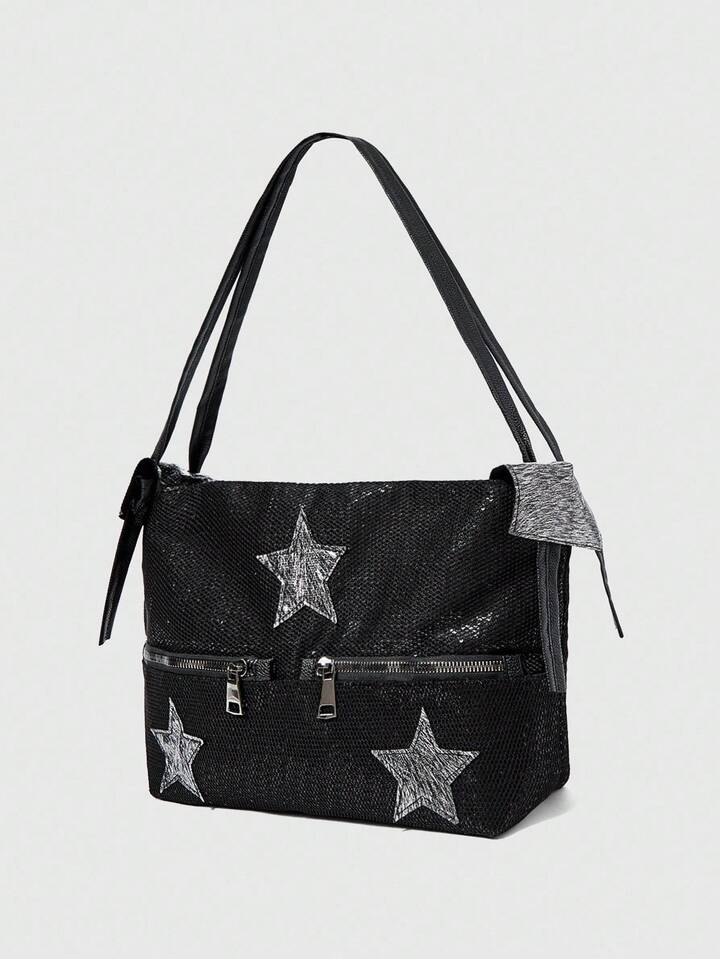 Grunge Punk Bolso de hombro de moda con estampado de estrellas para mujeres