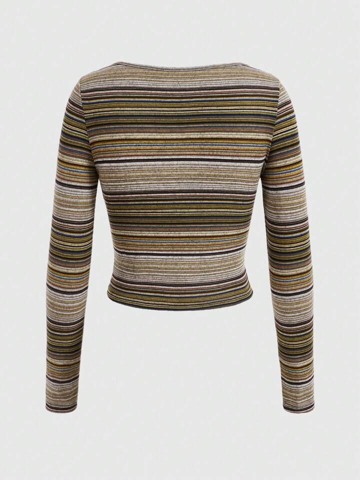 Grunge Punk Camiseta con estampado de rayas fruncido