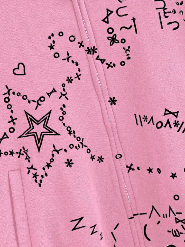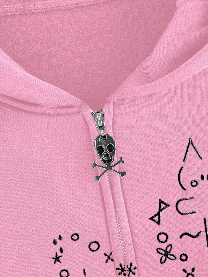 Grunge Punk Sudadera holgada de streetwear relajado con capucha abierta delante, con bordado de emoticono japonés y orejas de gato en estilo subcultura