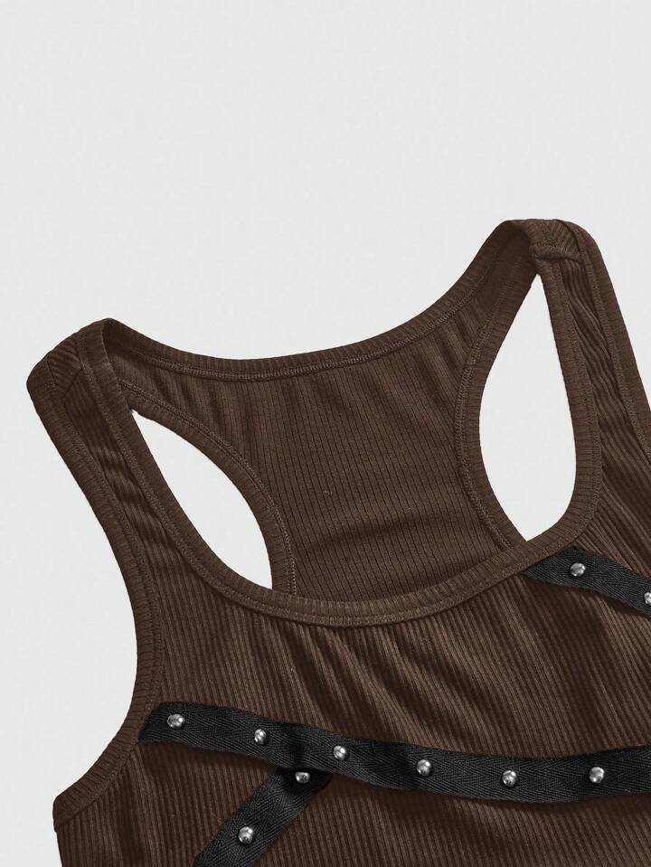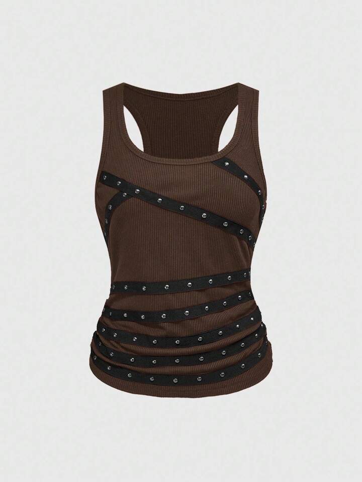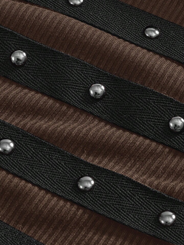 Grunge Punk Vestido de verano, vacaciones, graduación, Pascua para mujer, top de tirantes negro sexy de escote bajo con tachuelas y cuentas, para concierto de música rock, festival de playa