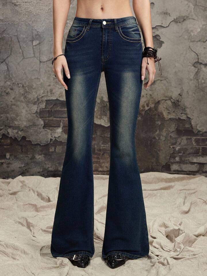 Grunge Punk Jeans ajustados y acampanados para mujer con lavado vintage y efecto de bigotes de gato, con motivo de concierto de verano en Nashville