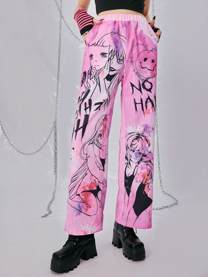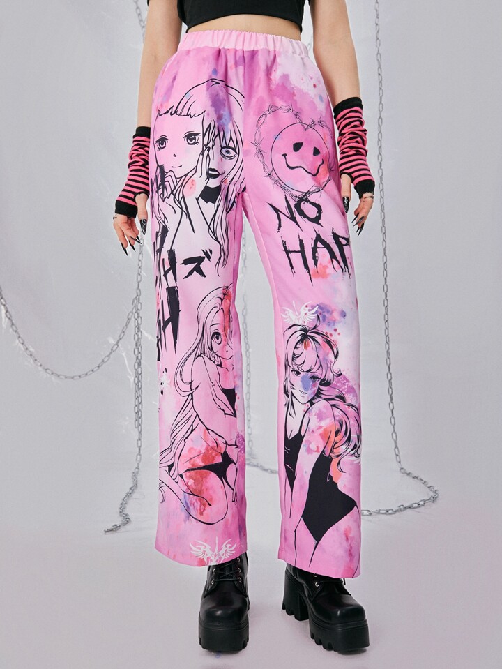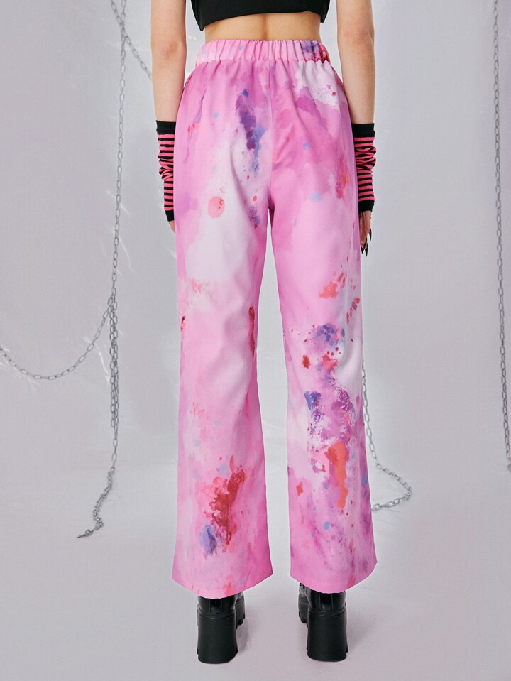 Grunge Punk Pantalones rectos de tie dye con estampado de figura
