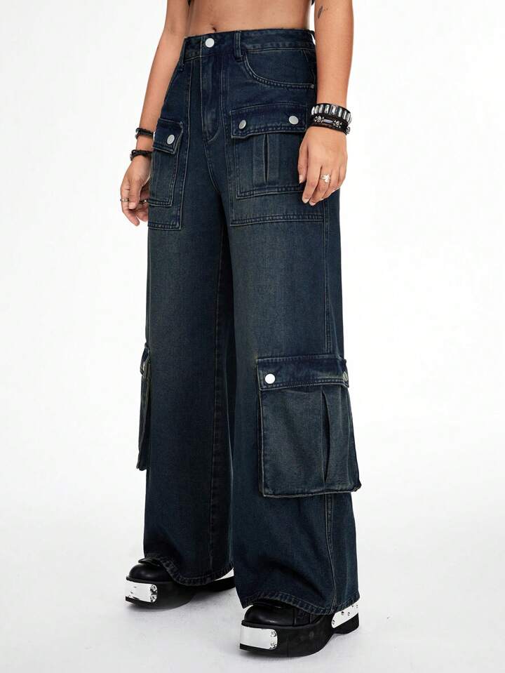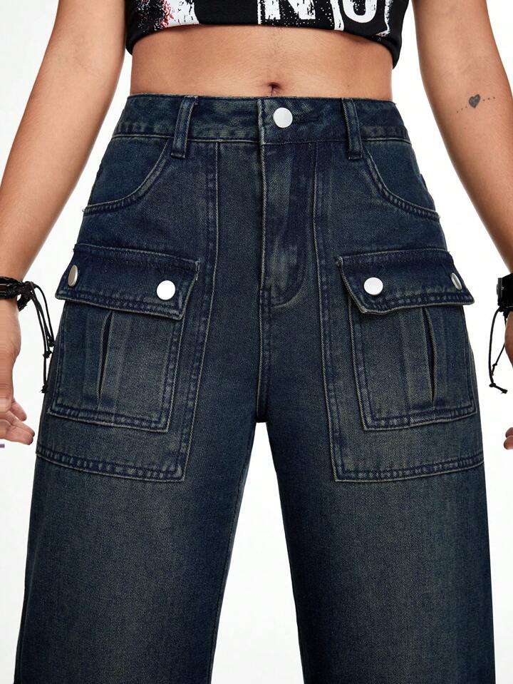 Grunge Punk Jeans de mujer rectos y sueltos estilo vintage lavados
