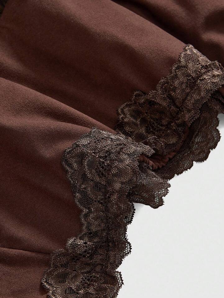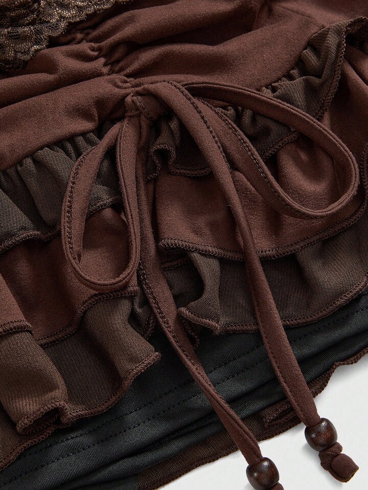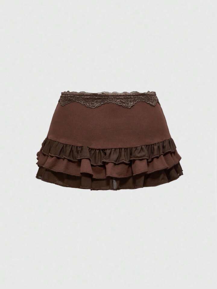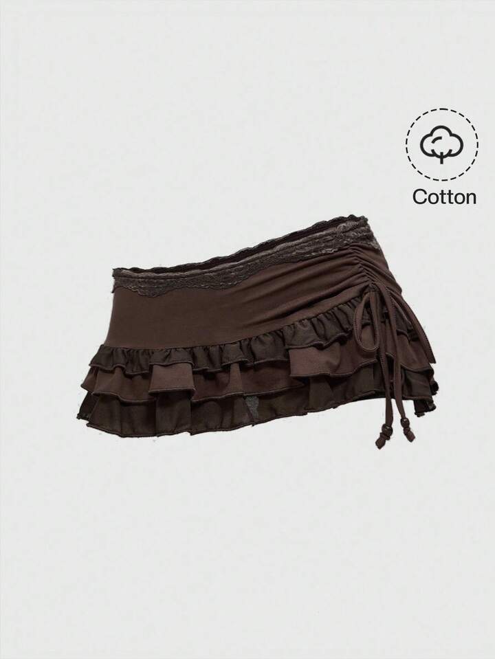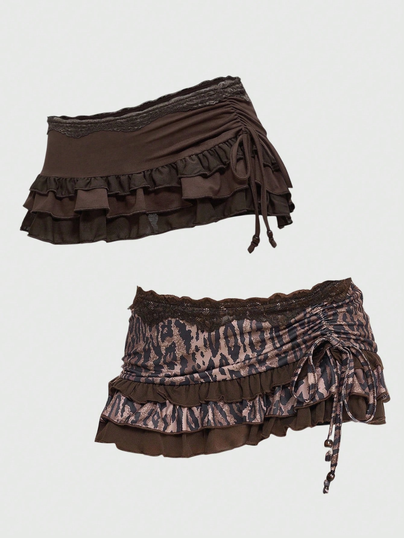 Grunge Punk Minifalda sexy con volantes, lazo y estampado de leopardo de cintura baja, con adorno de encaje vintage, para mujeres en primavera, conciertos, festivales y San Valentín