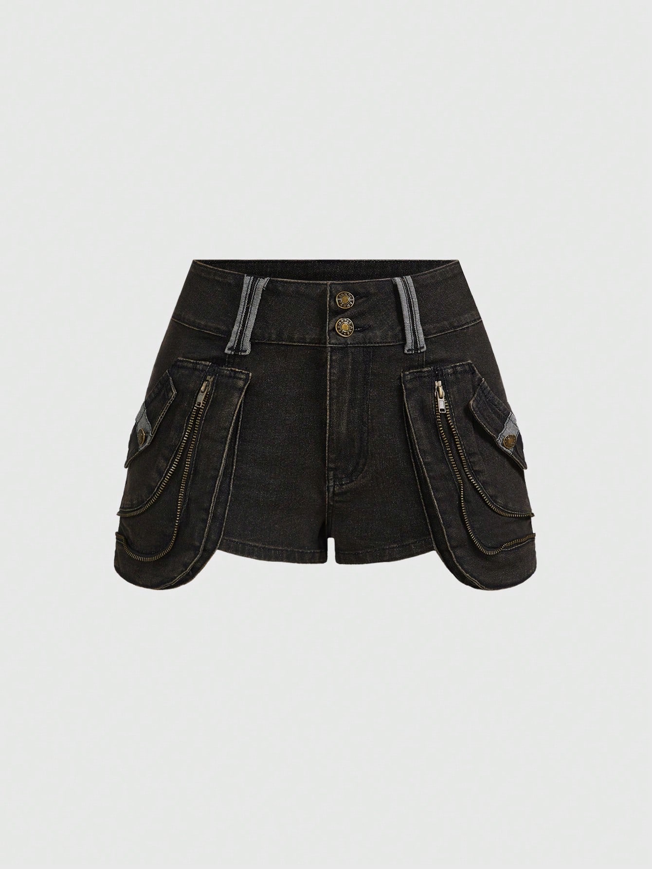 Grunge Punk Shorts vaqueros mini de cintura súper baja con bolsillo cargo, estilo vintage y sexy