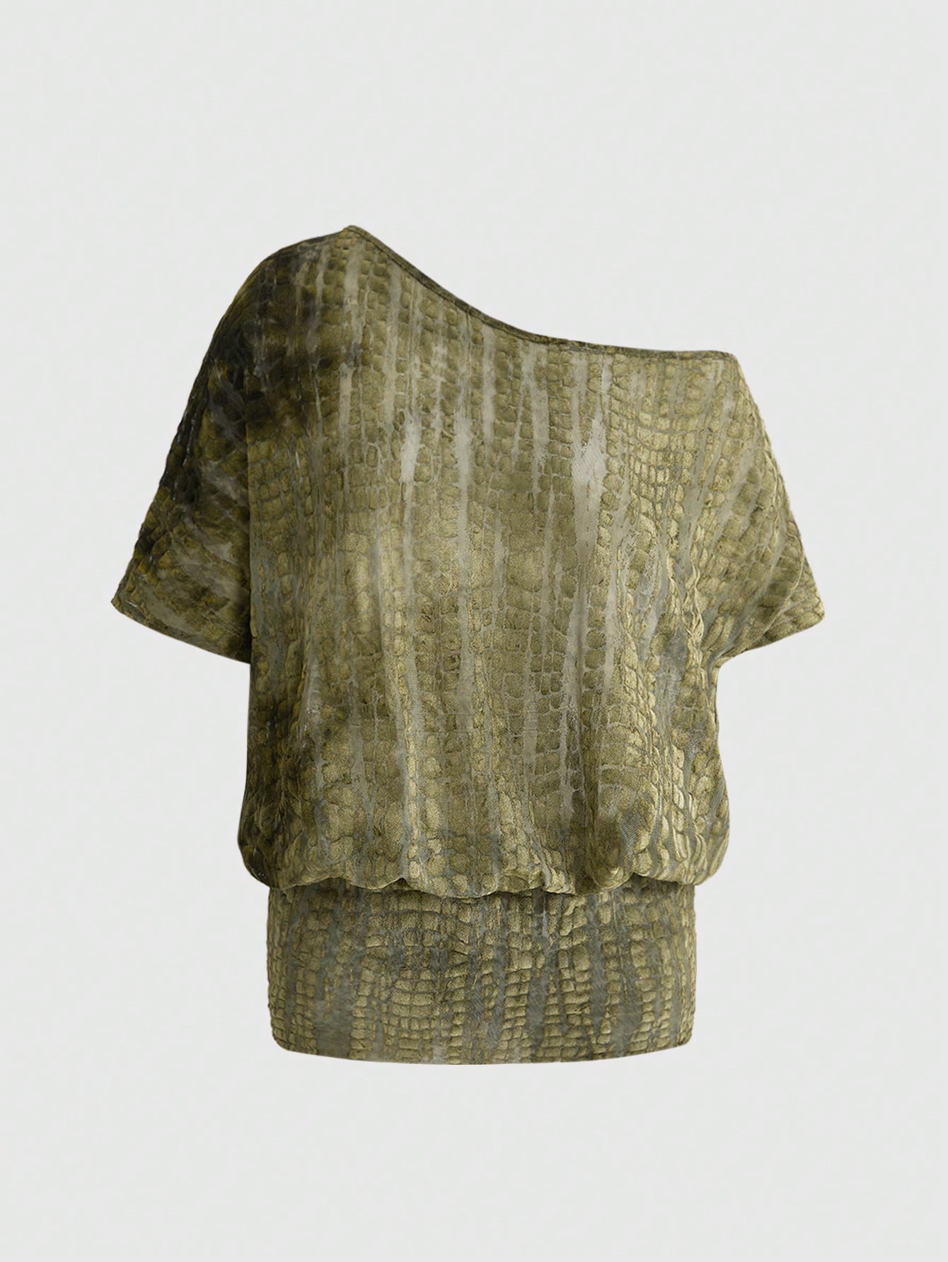 Grunge Punk Vestido mini suelto de mujer con hombro asimétrico, teñido anudado y degradado de terciopelo vintage