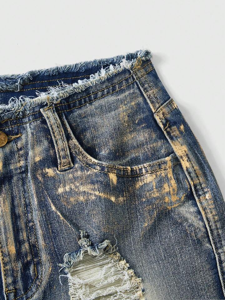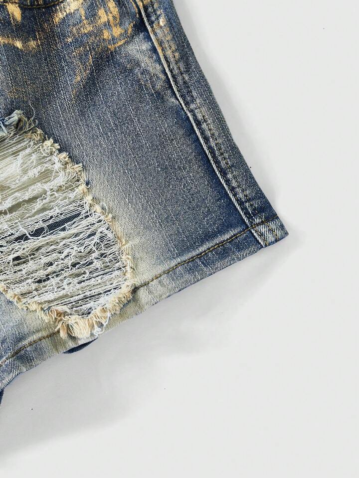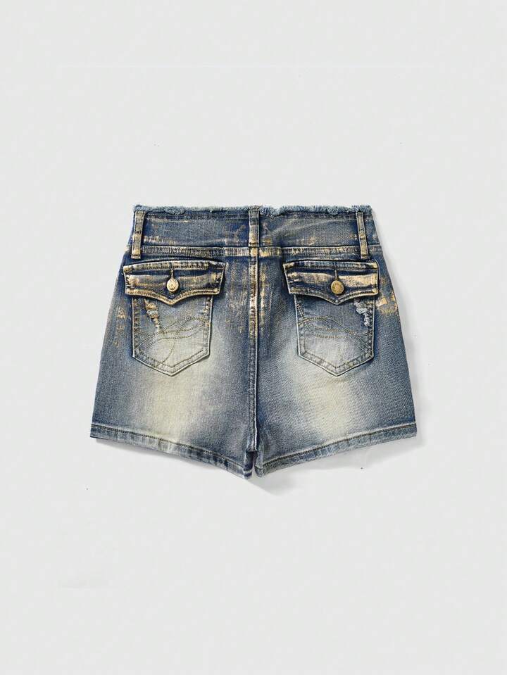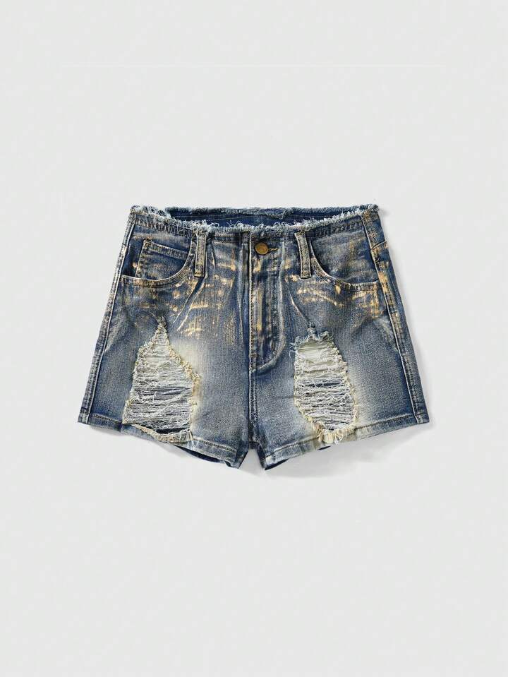 Grunge Punk Pantalones Cortos De Mezclilla Lavados, Desgarrados Y Deshilachados Con Bolsillos Oblicuos