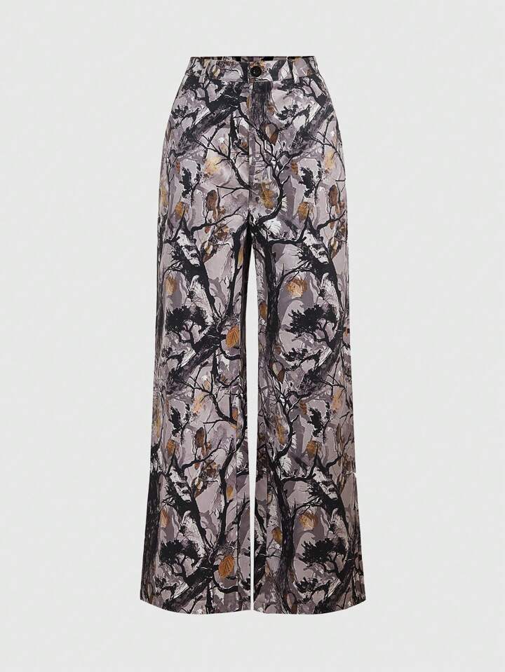 Grunge Punk Pantalones Largos Con Estampado De Hojas Y Ramas De Árbol Marchitos