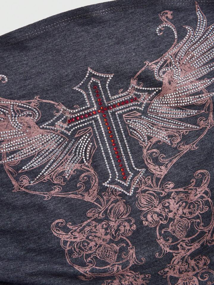 Grunge Punk Top corto bandeau con estoperoles en patrón de estrellas gris-negro para mujeres
