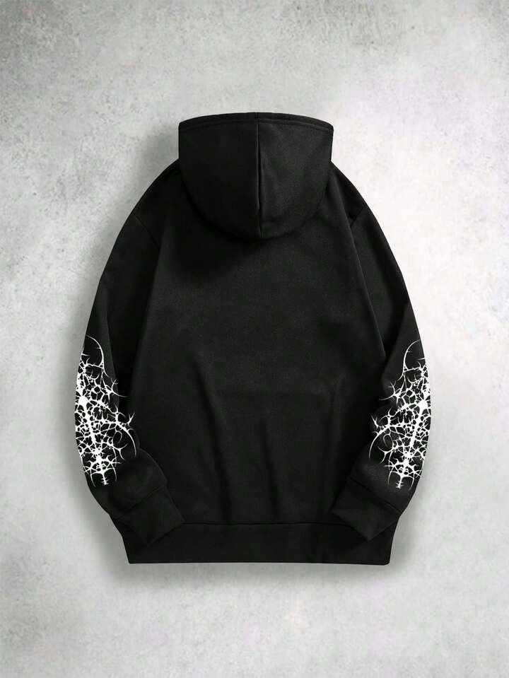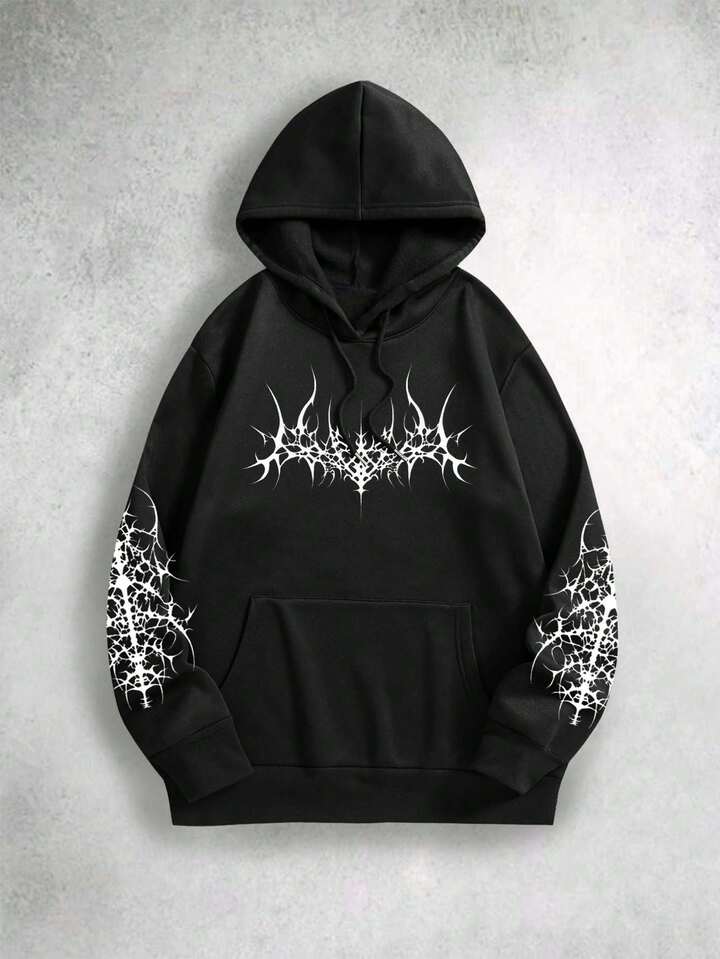 Grunge Punk Sudadera con capucha de felpa negra con estampado de espinas gótico para mujer