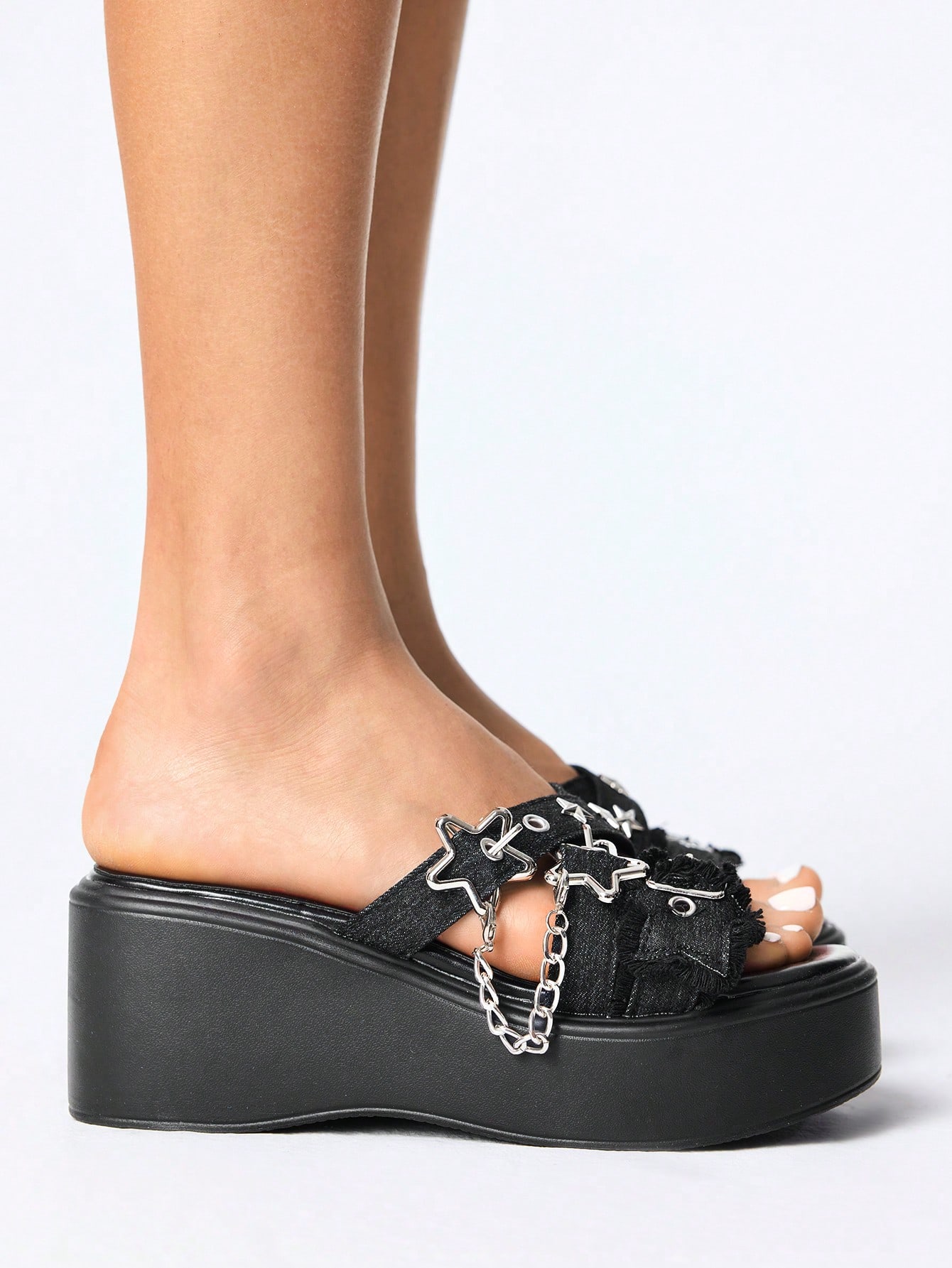 Grunge Punk Sandalias de taco alto negras para mujer, sandalias de plataforma de cuña con tiras cruzadas estilo gótico/punk rock, con remaches, para el verano y la playa