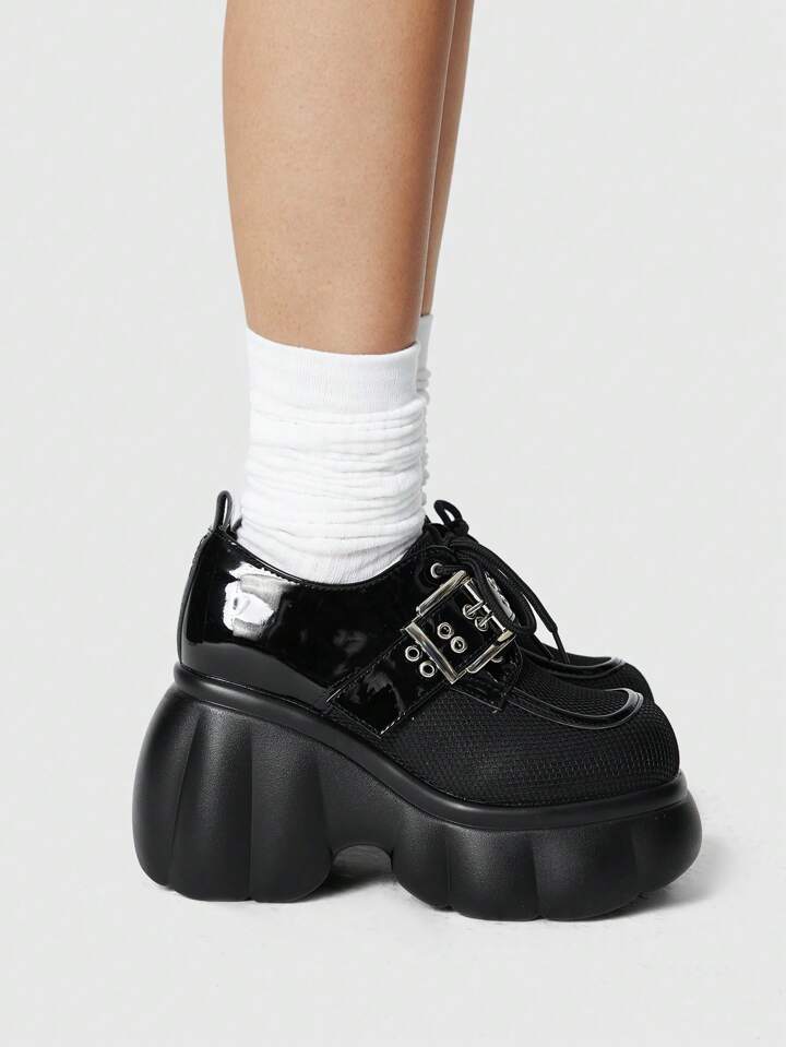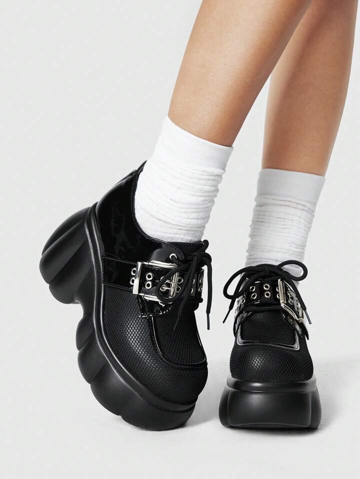 Grunge Punk Mocasines de moda góticos/punk para mujer con plataforma, puntera redonda y tachuelas, color negro