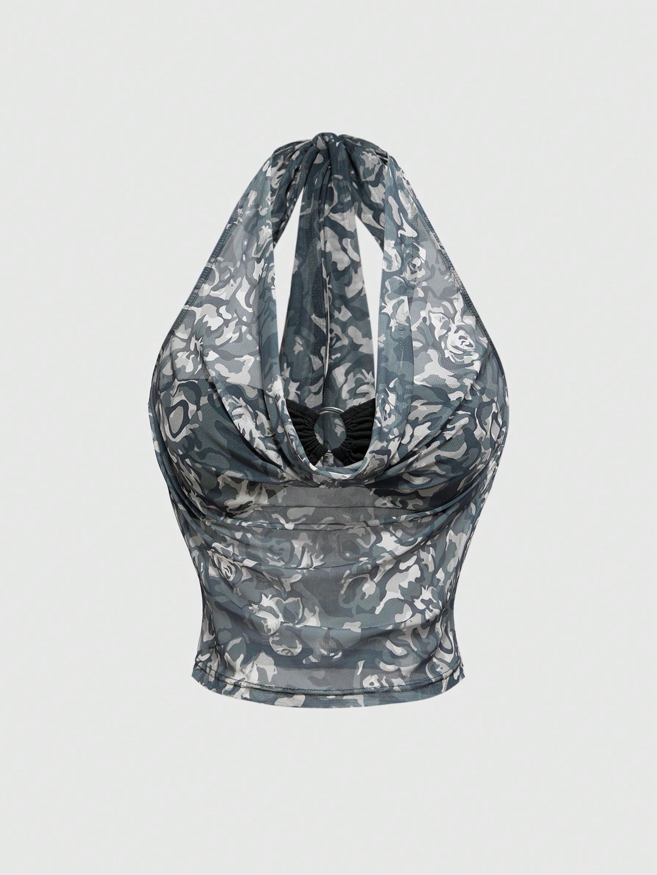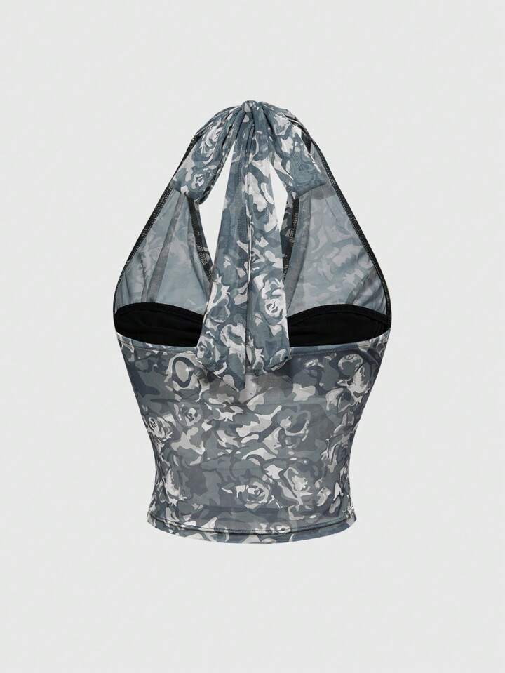 Grunge Punk Top de malla sin espalda sexy y de vacaciones estilo camuflajeY2K para mujer