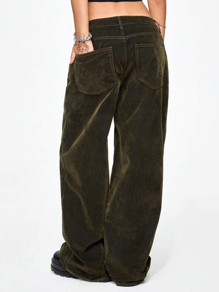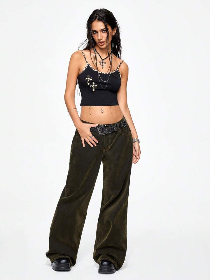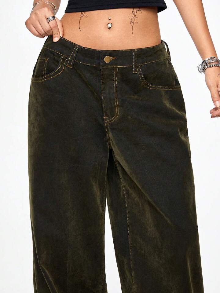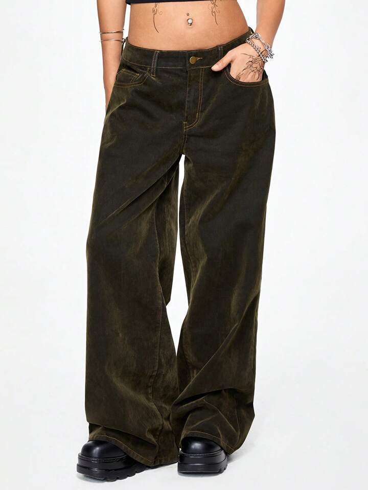 Grunge Punk Jeans de mujer de talle bajo, pierna ancha y desgastados de casuales