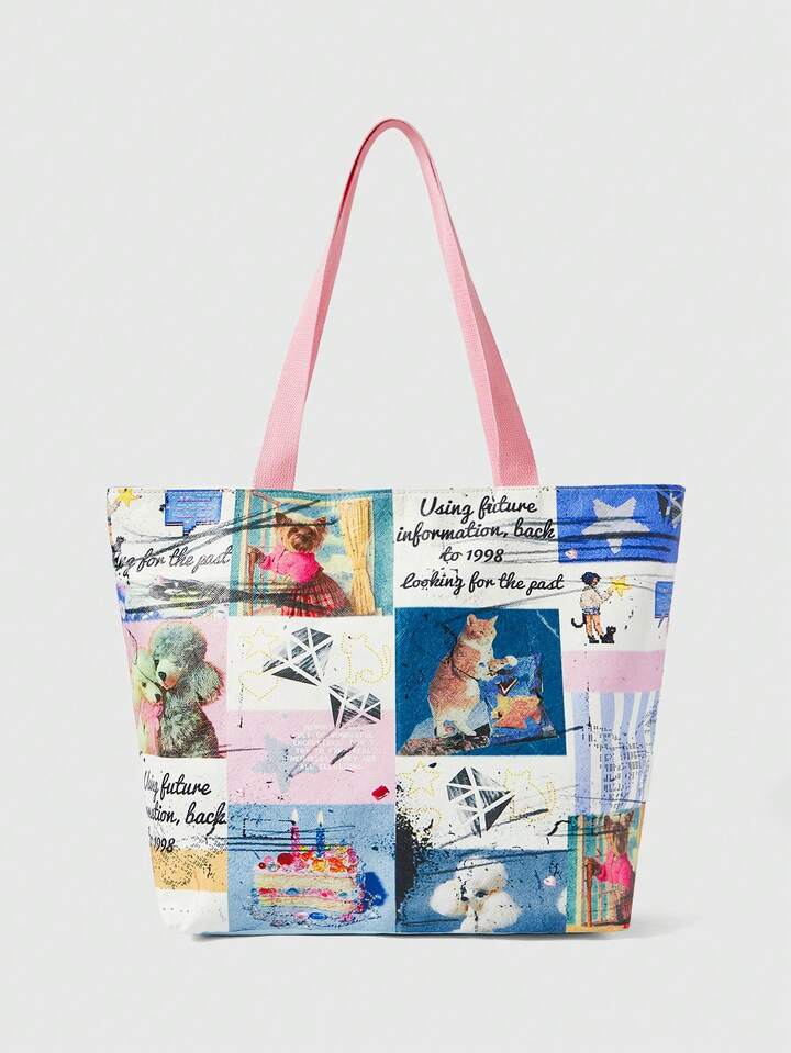 Grunge Punk Bolso de mano casual de mujer con estampado de lema de gato, de gran capacidad