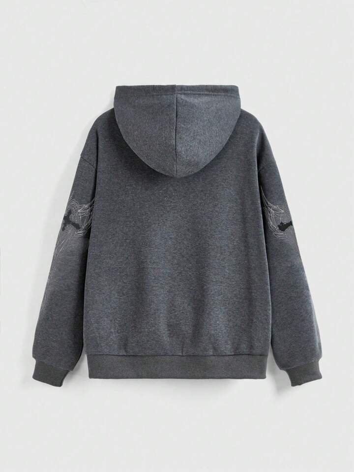 Grunge Punk Sudadera con capucha de manga larga con cremallera y estampado de cruz, de hombros caídos, para otoño e invierno, parte superior de manga larga para mujer