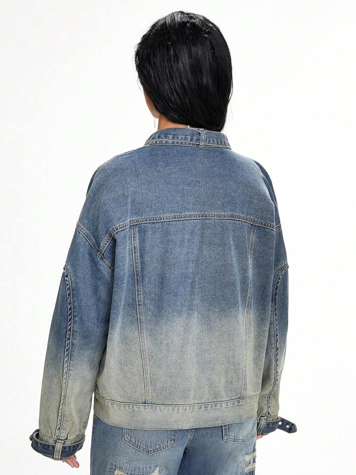 Grunge Punk Chaqueta vaquera de mujer de manga larga, hombros caídos, suelta y desgastada