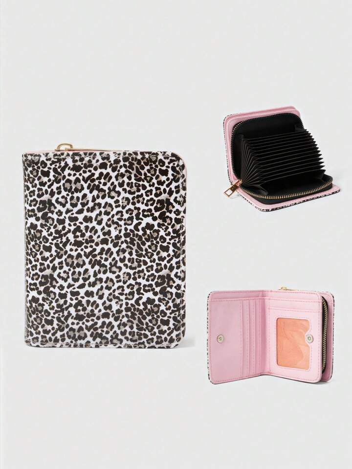 Grunge Punk Cartera con monedero y portacafé con cremallera, estampada de leopardo, de moda para mujer