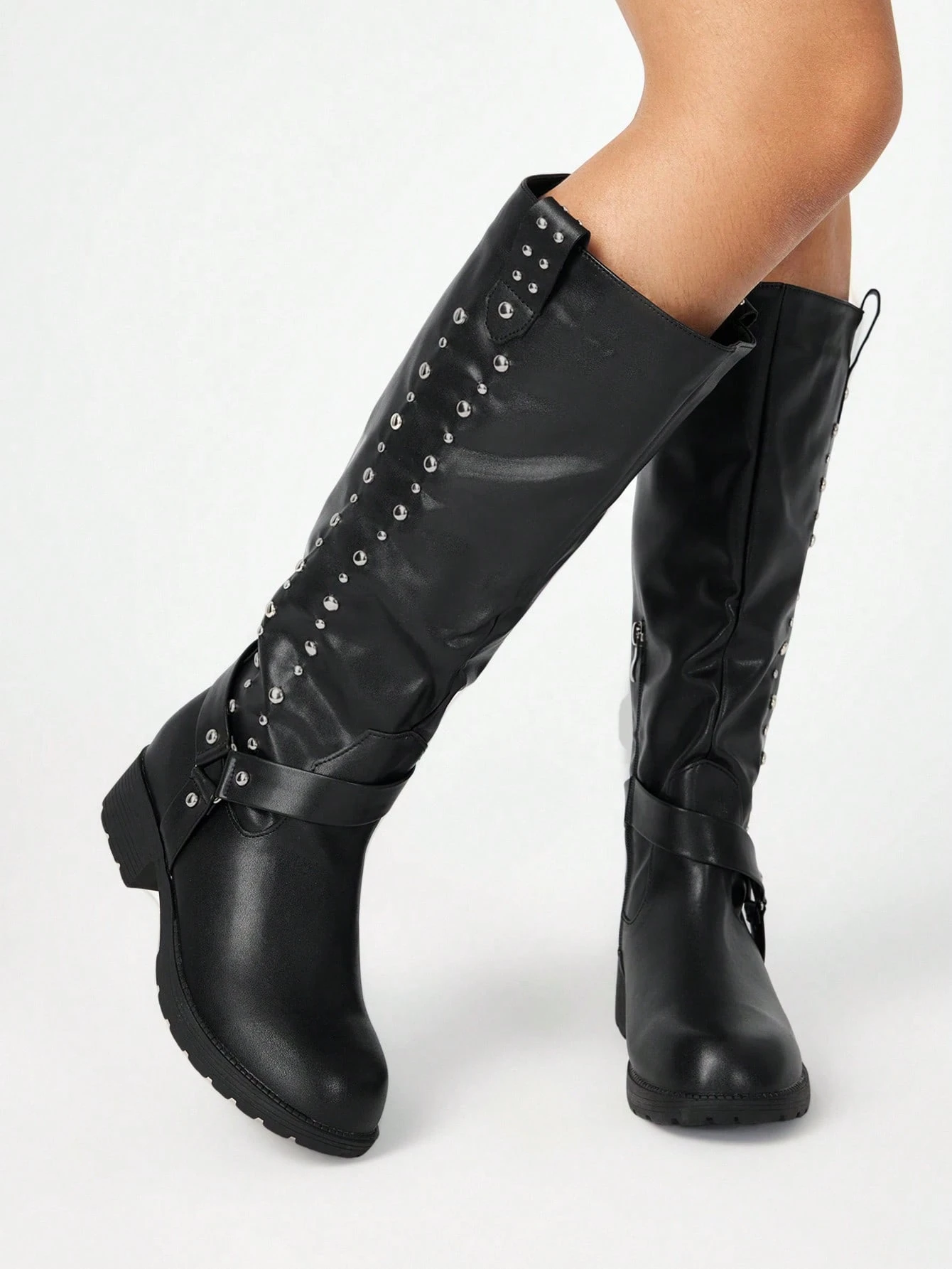 Grunge Punk Botas de cuero de rodilla con decoración de tachuelas para mujer, de moda para el transporte