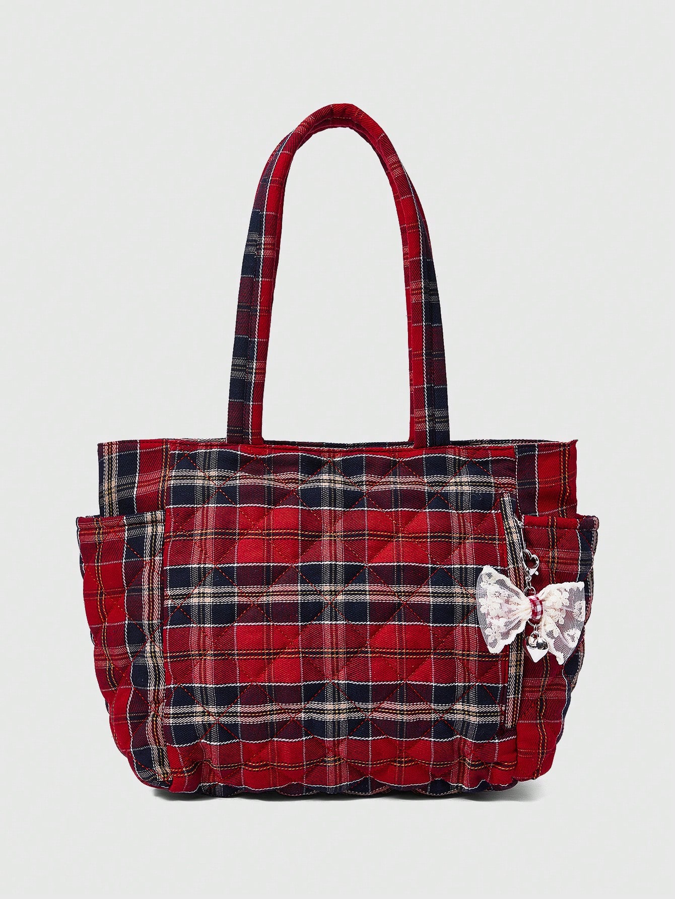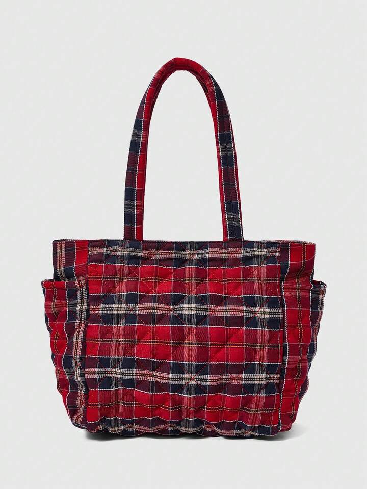 Grunge Punk Bolso de hombro casual de gran capacidad a cuadros para uso diario de la mujer