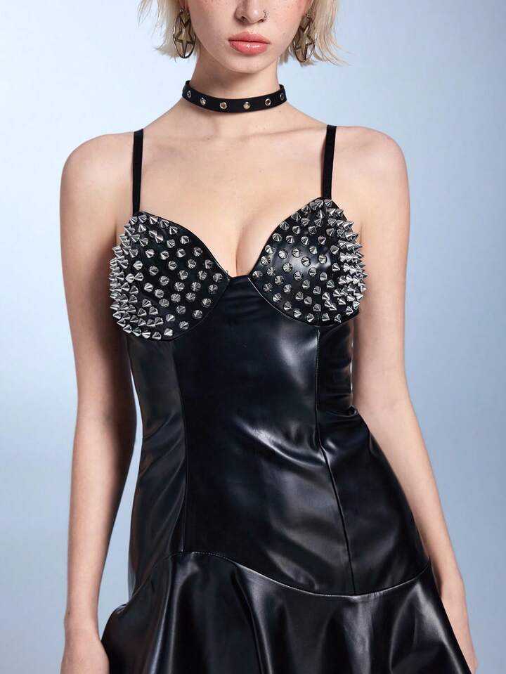 Grunge Punk Vestido mini de mujer con tachuelas de estilo punk de PU