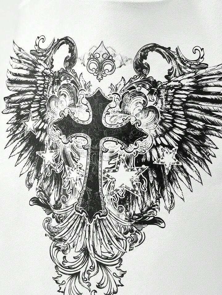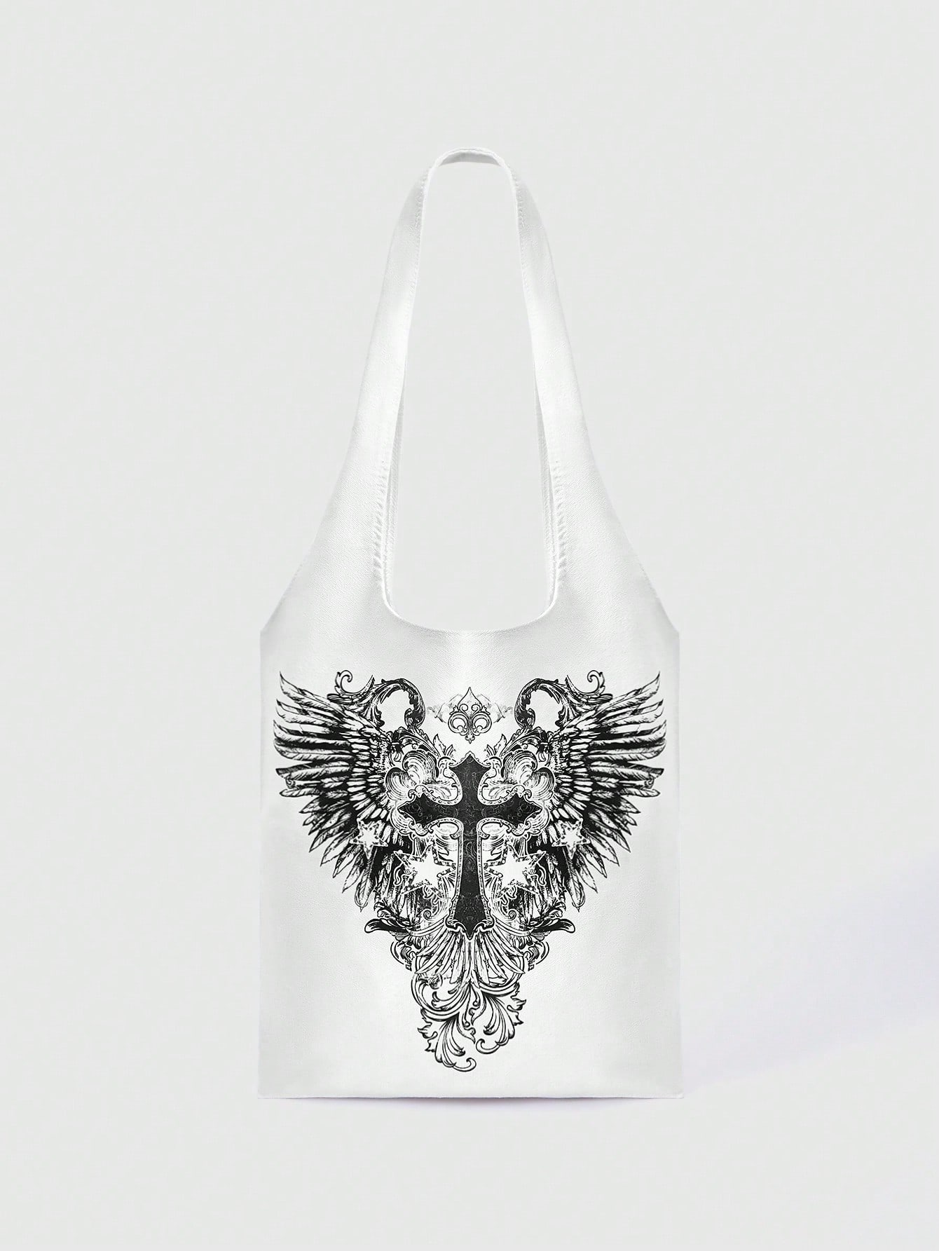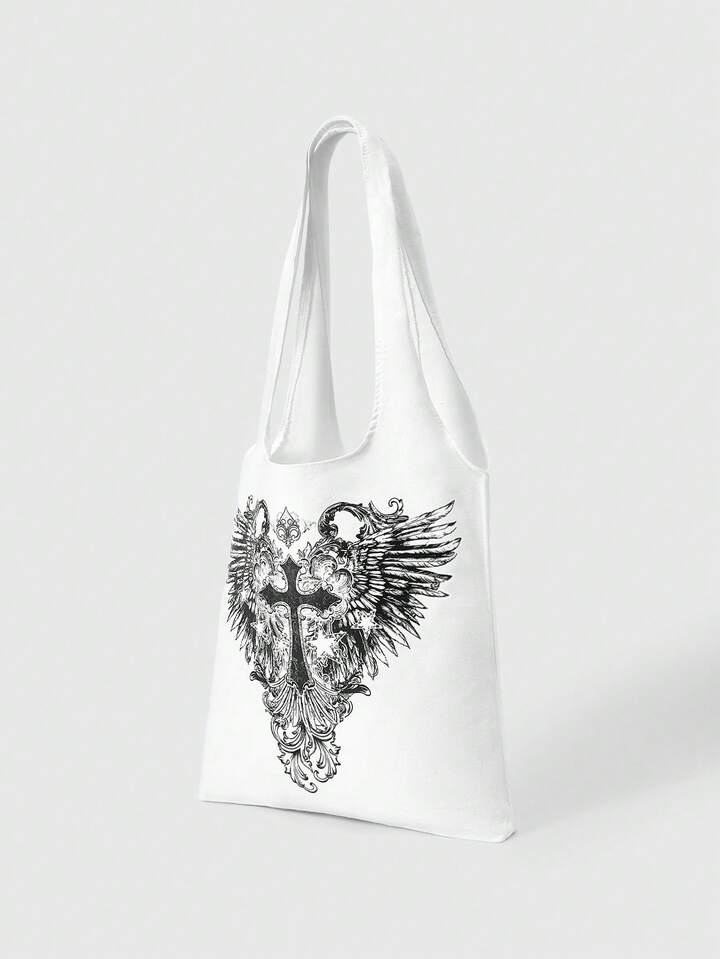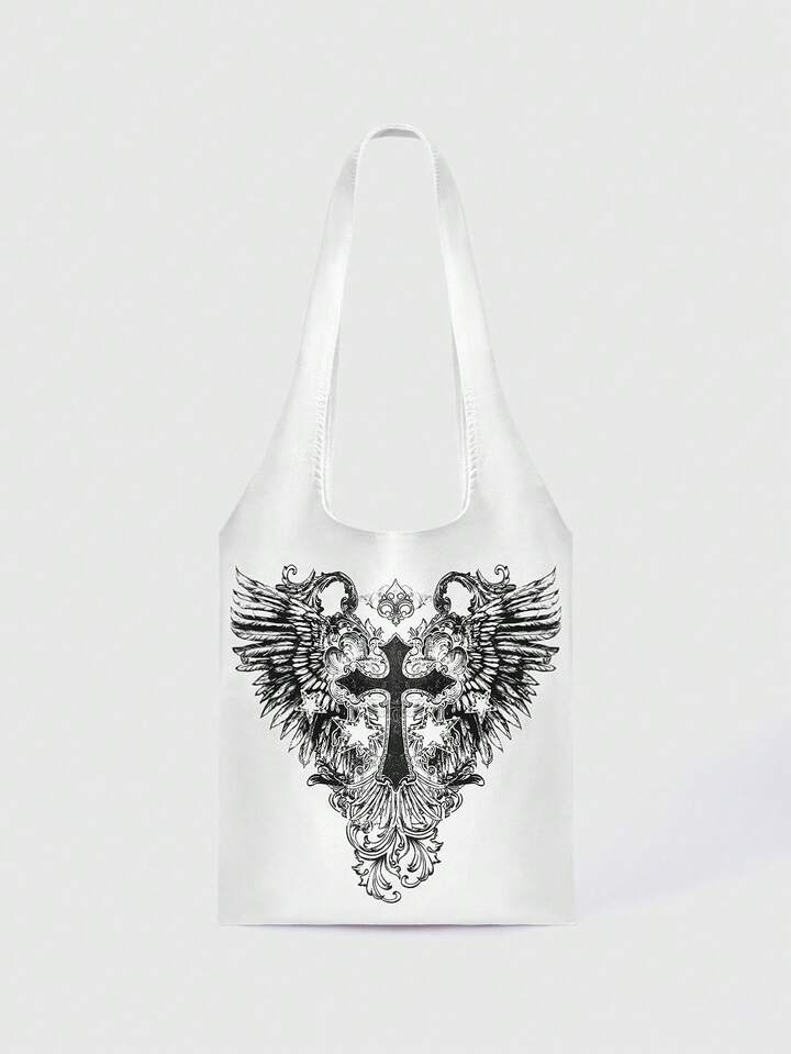Grunge Punk Bolso de hombro con estampado de alas y cruz para mujer