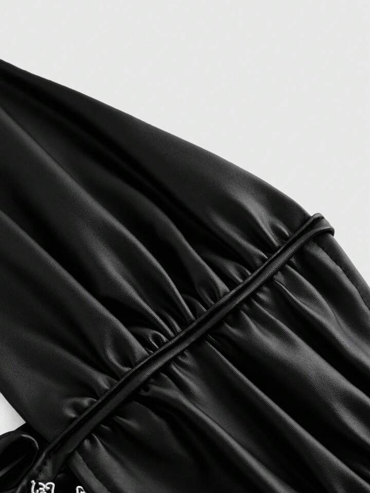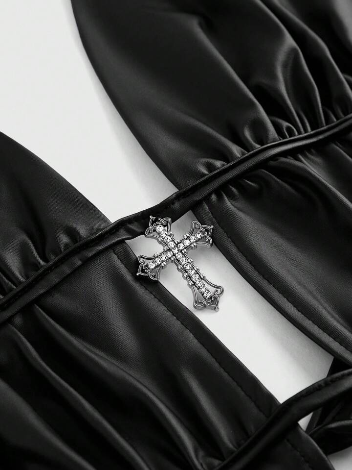 Grunge Punk Vestido camiseta mini con espalda descubierta y colgante cruzado de moda y sexy para mujer
