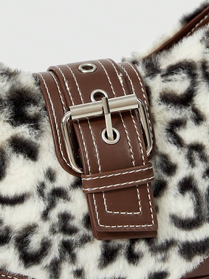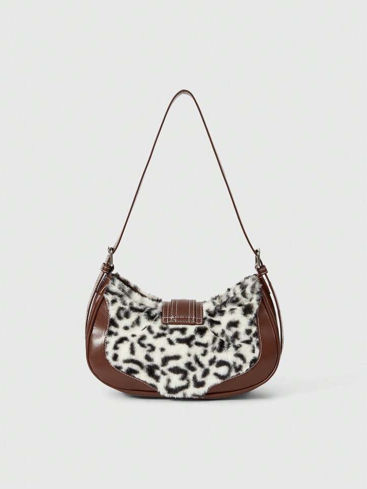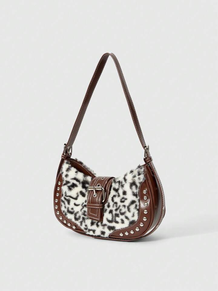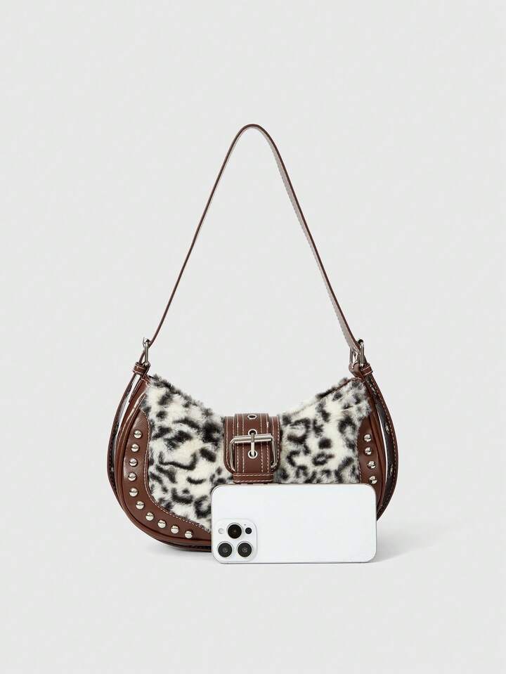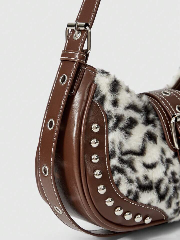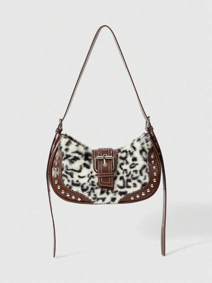 Grunge Punk Bolso de hombro de mujer con estampado de leopardo vintage y patchwork de moda