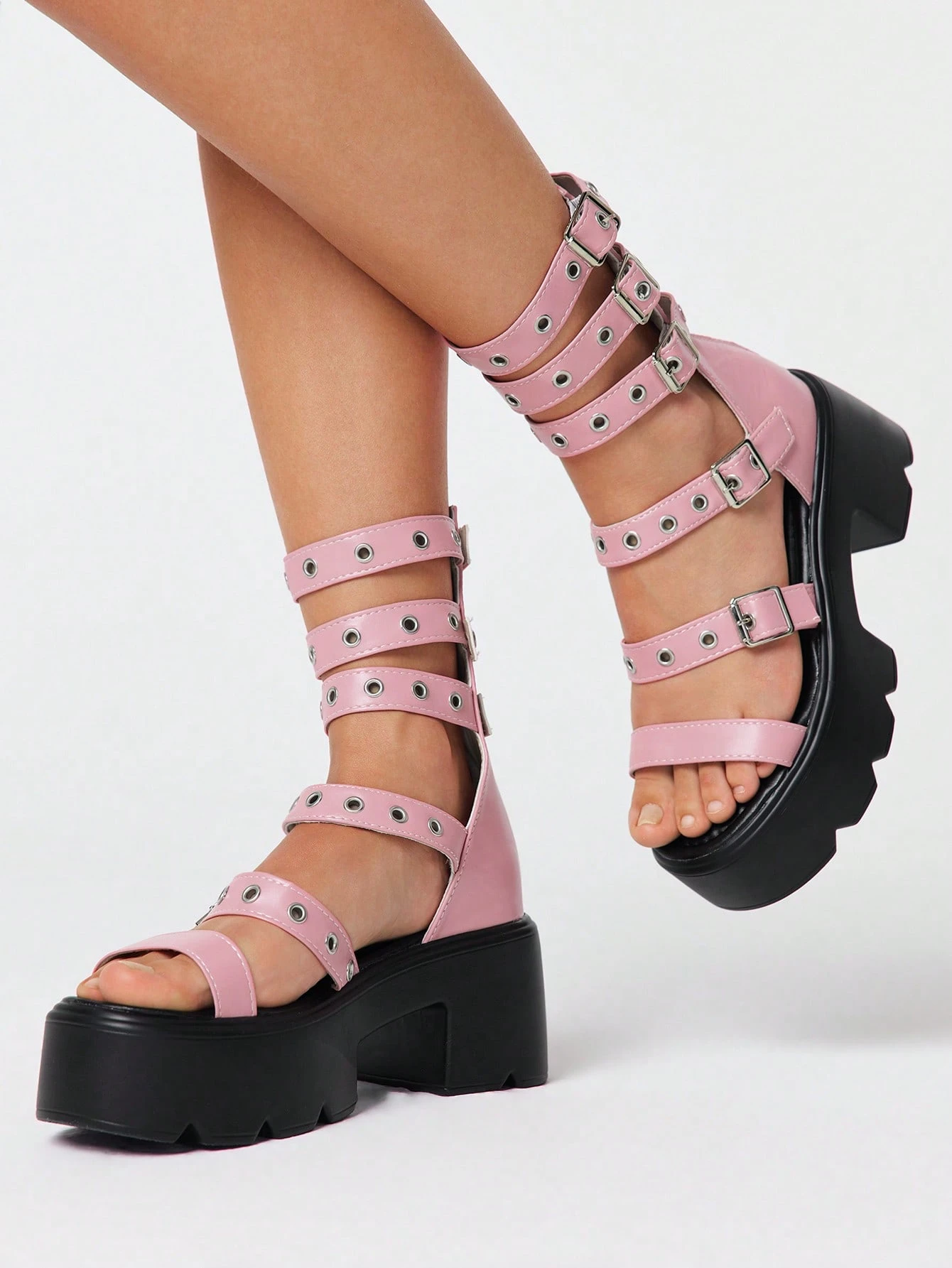 Grunge Punk Sandalias de plataforma con tiras de cuero, de tacón alto grueso, de estilo gótico, rock y punk, de punta abierta, para vestidos de verano y Halloween