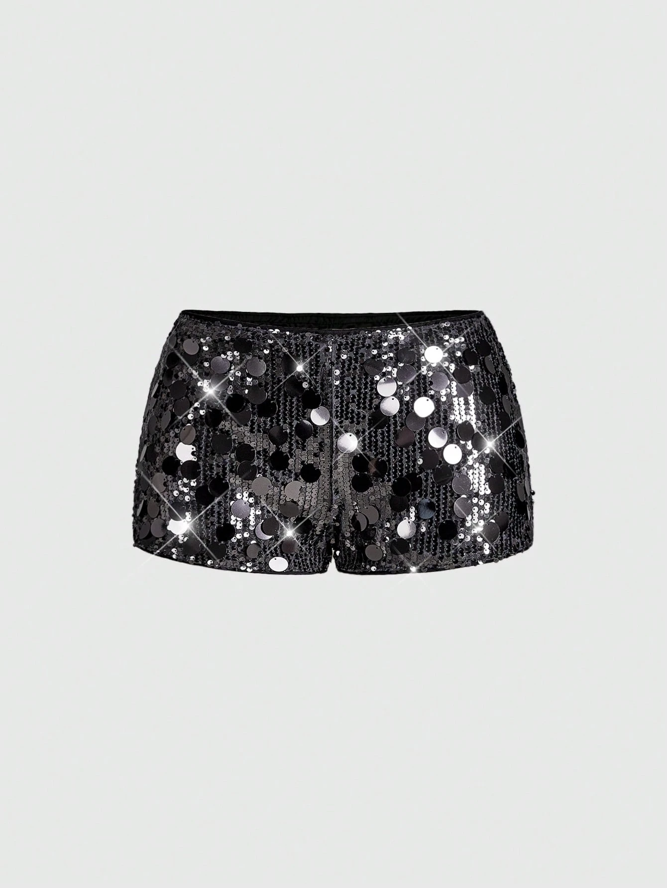 Grunge Punk Minifalda negra brillante para mujer, ideal para graduación, Pascua, concierto, vacaciones en Nashville - Pantalones cortos ultra sexys y de cintura super baja, estilo streetwear punk