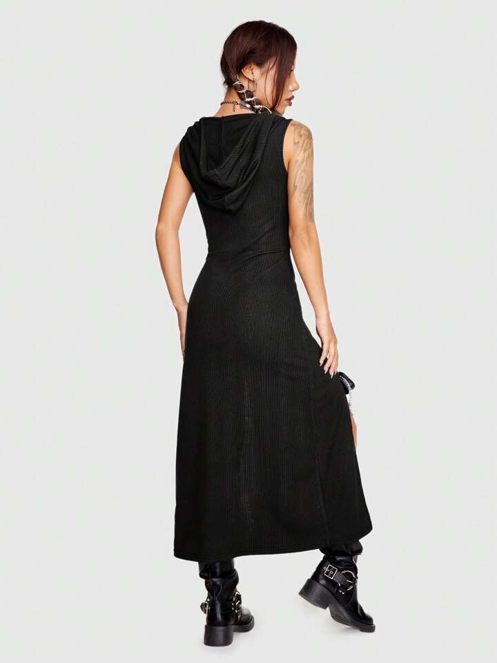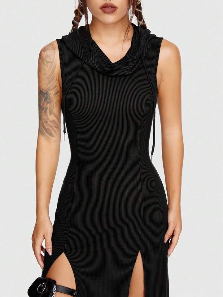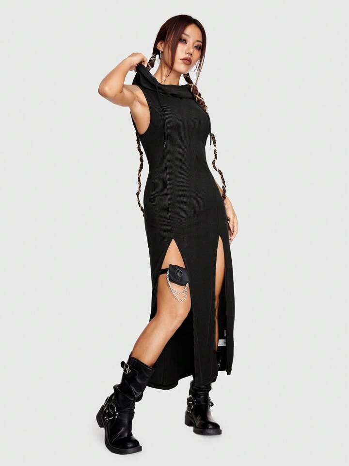 Grunge Punk Vestido Ajustado Con Capucha Y Abertura Alta Para Mujer