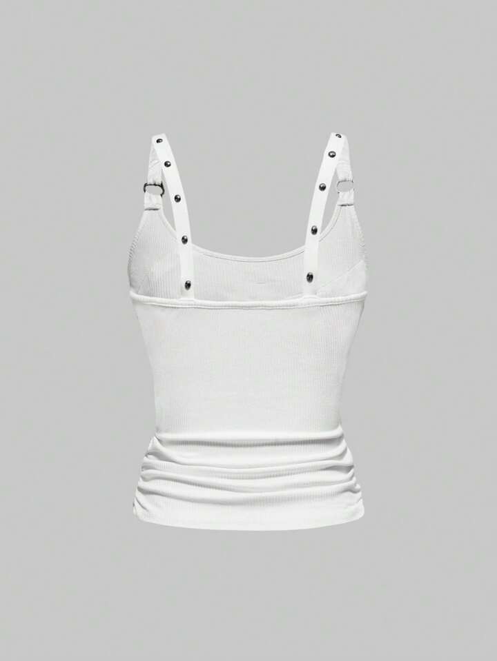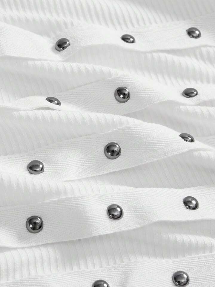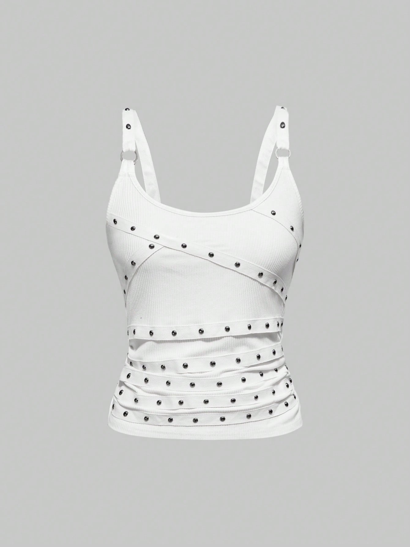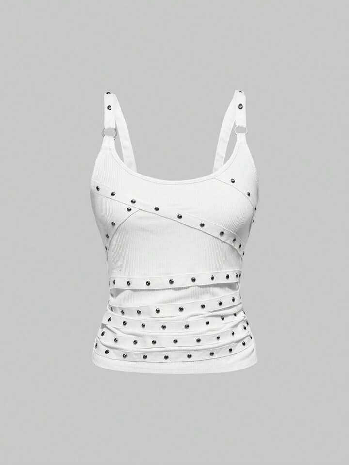 Grunge Punk Camiseta sin mangas con cuello redondo, espalda descubierta, remaches y lentejuelas con lazo, estilo sexy de K-pop, adecuada para verano, playa, graduación, Pascua, conciertos, Nashville, festivales de música