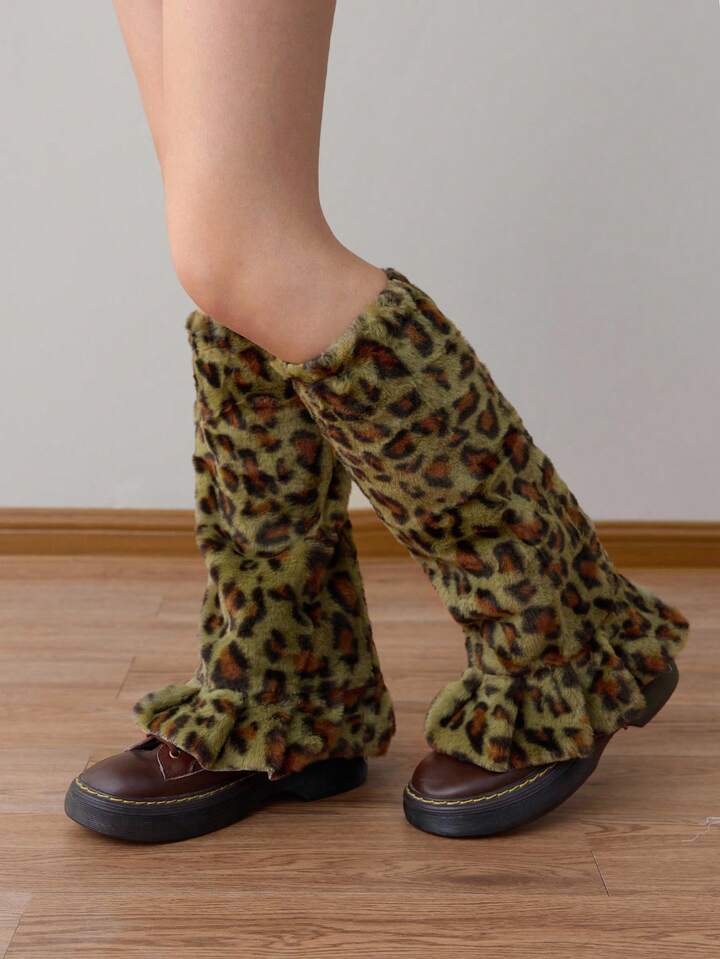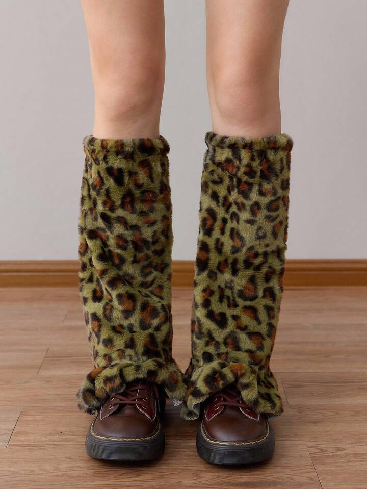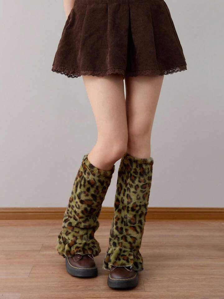 Grunge Punk Calentadores de piernas de mujer con estampado de leopardo de moda