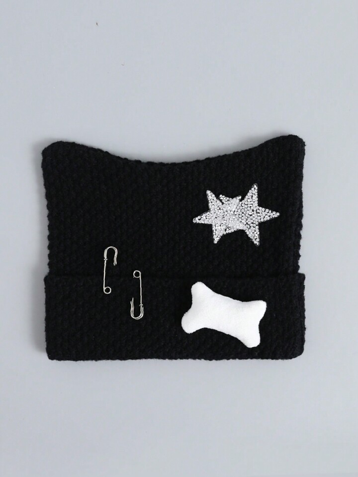 Grunge Punk Gorro de punto minimalista para mujer, uso diario casual de invierno