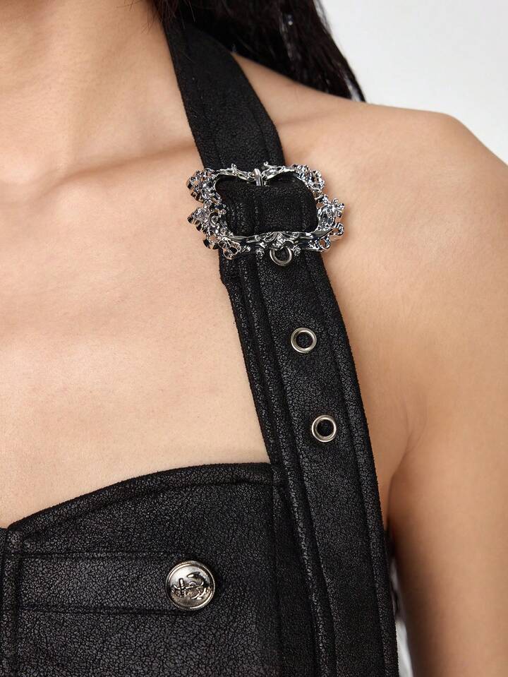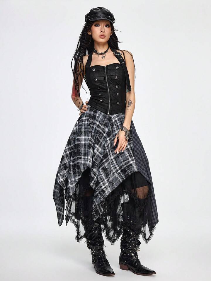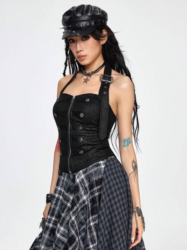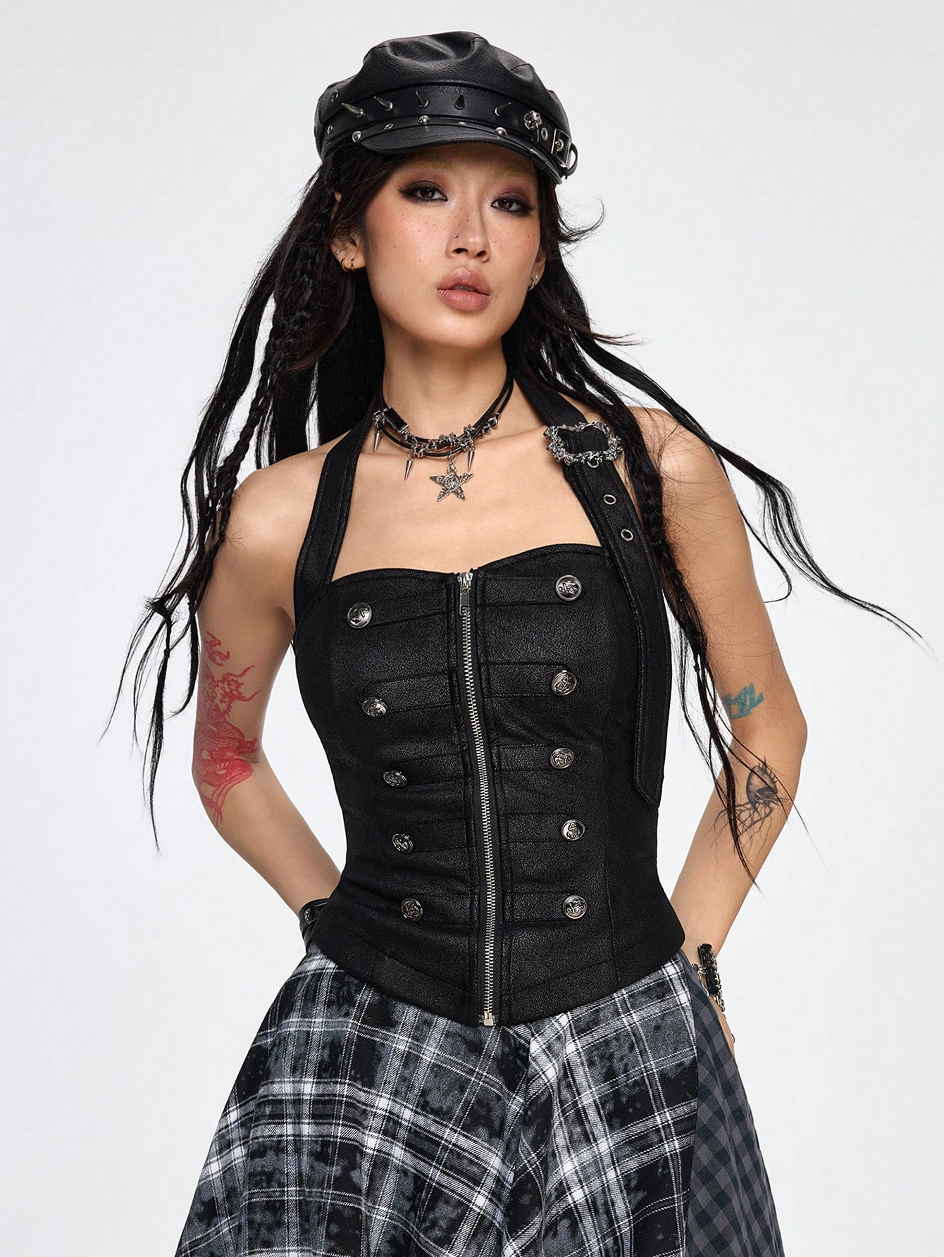 Grunge Punk Chaleco asimétrico sin tirantes de ante estilo marinero para mujer