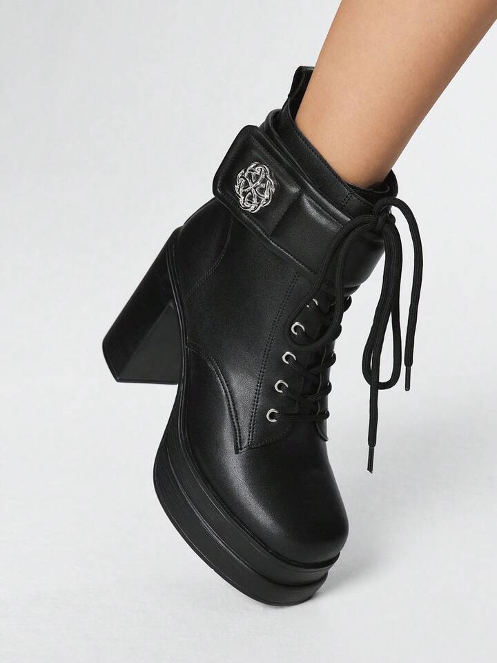 Grunge Punk Botas de tobillo de fiesta diarias cómodas minimalistas de moda con cierre lateral, decoración de botón dorado, suela moldeada de PU y puntera redonda de PU para mujer