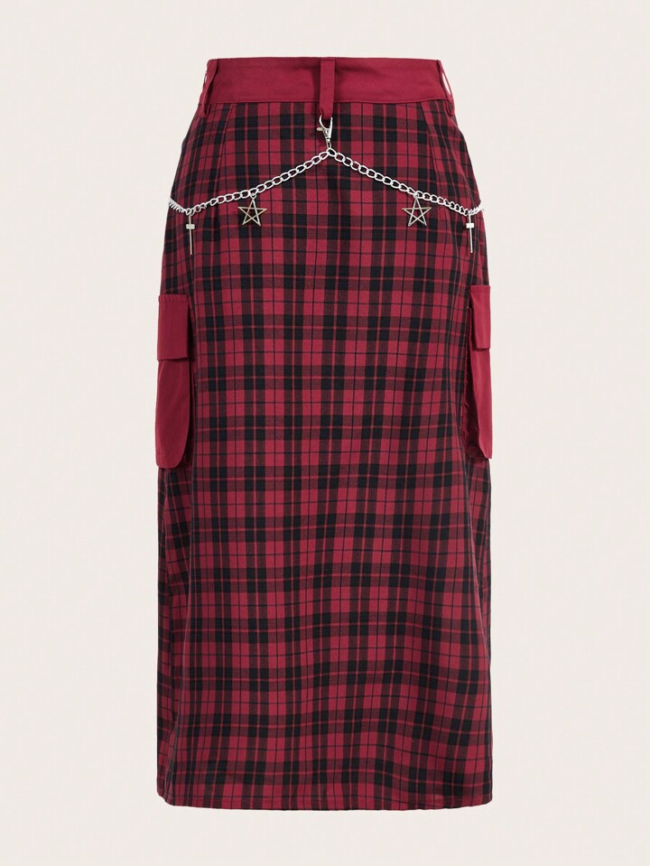 Grunge Punk Falda De Mujer A Cuadros Con Detalles De Cadena