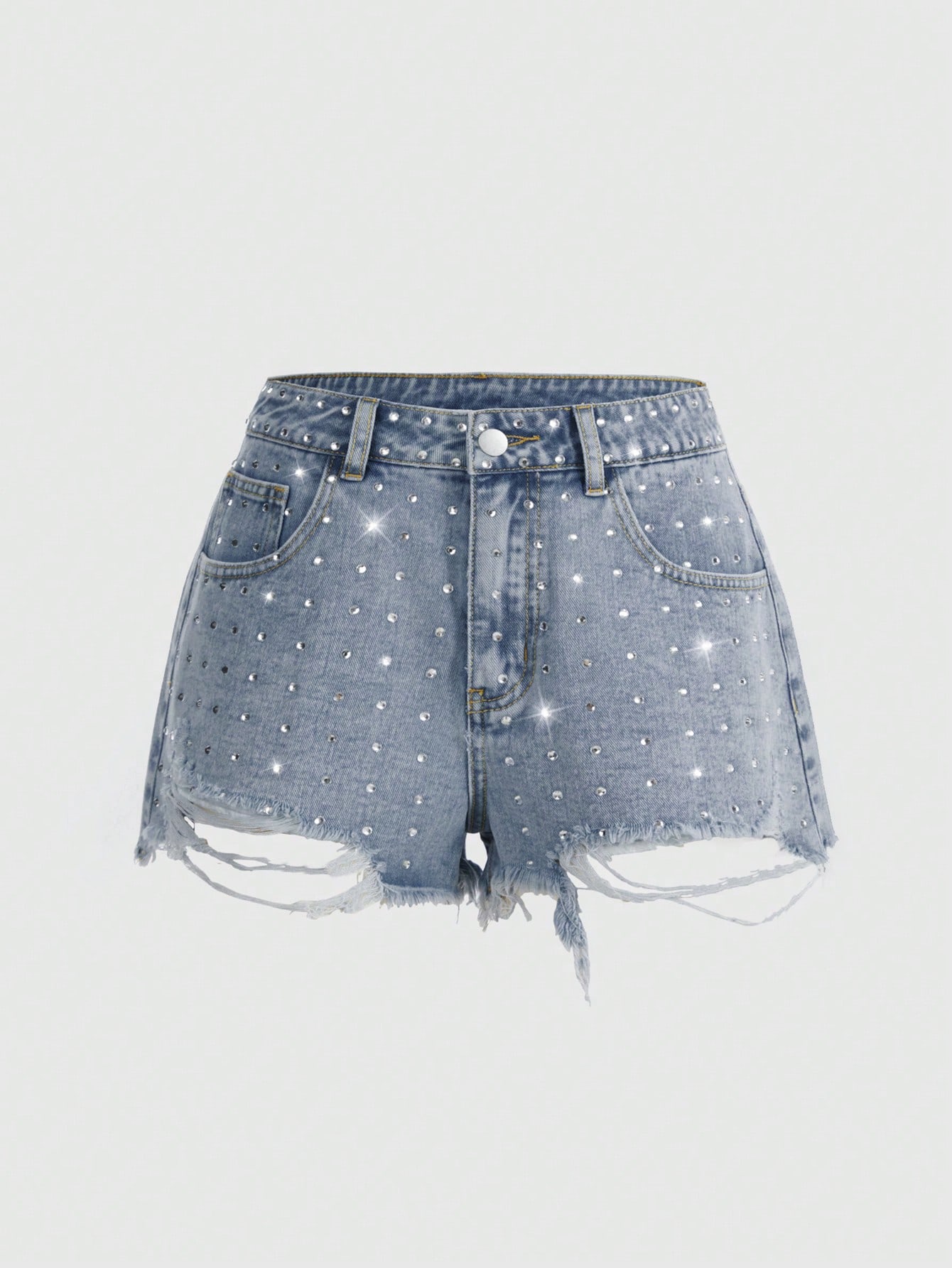 Grunge Punk Shorts vaqueros súper cortos con efecto desgastado y adornos de strass para mujer