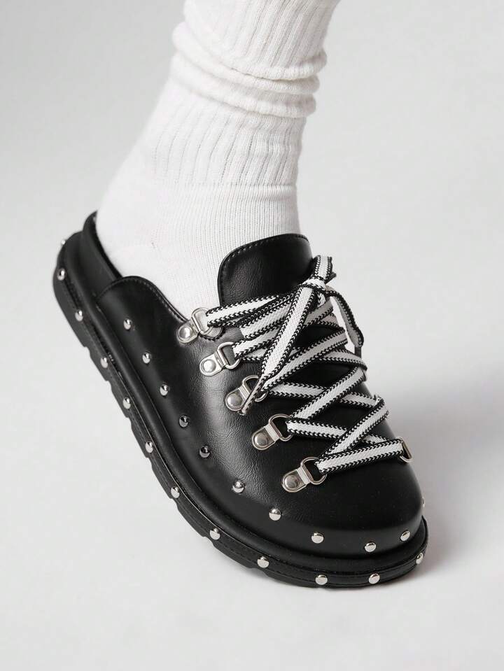 Grunge Punk Mocasines casuales cómodos con suela gruesa y decorados con remaches para mujeres