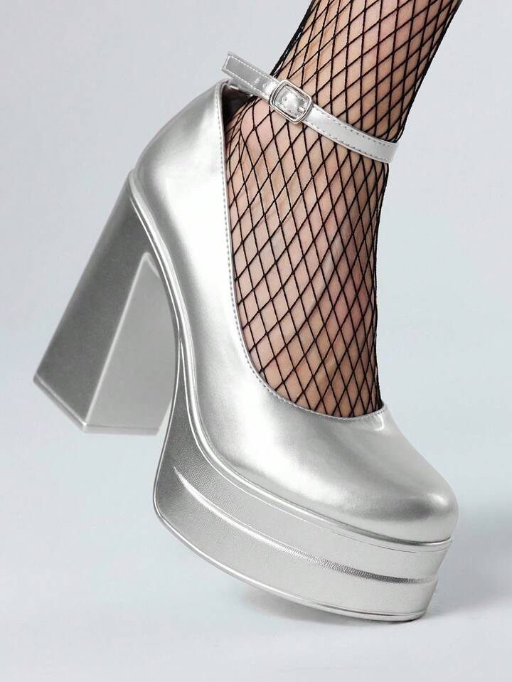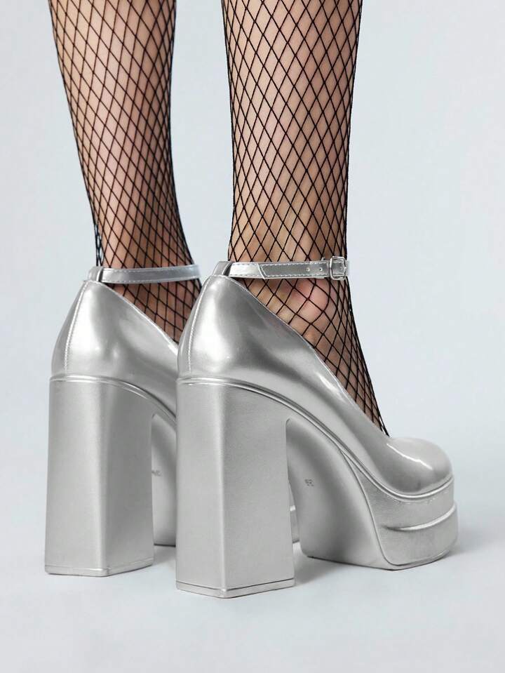 Grunge Punk Tacones altos plateados para mujer, adecuados para uso casual, punk y en el campus