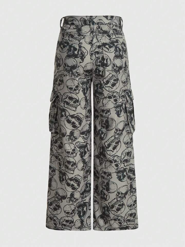 Grunge Punk Pantalones De Carga Impresos Con Diseño De Cráneo Para Mujer