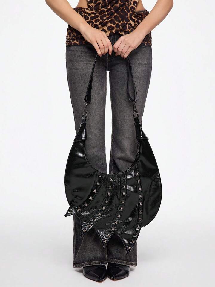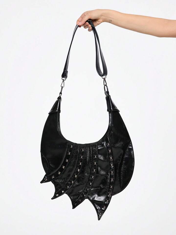 Grunge Punk Bolso de hombro minimalista de unicolor y estilo punk para mujeres, bolsa de almacenamiento casual diaria