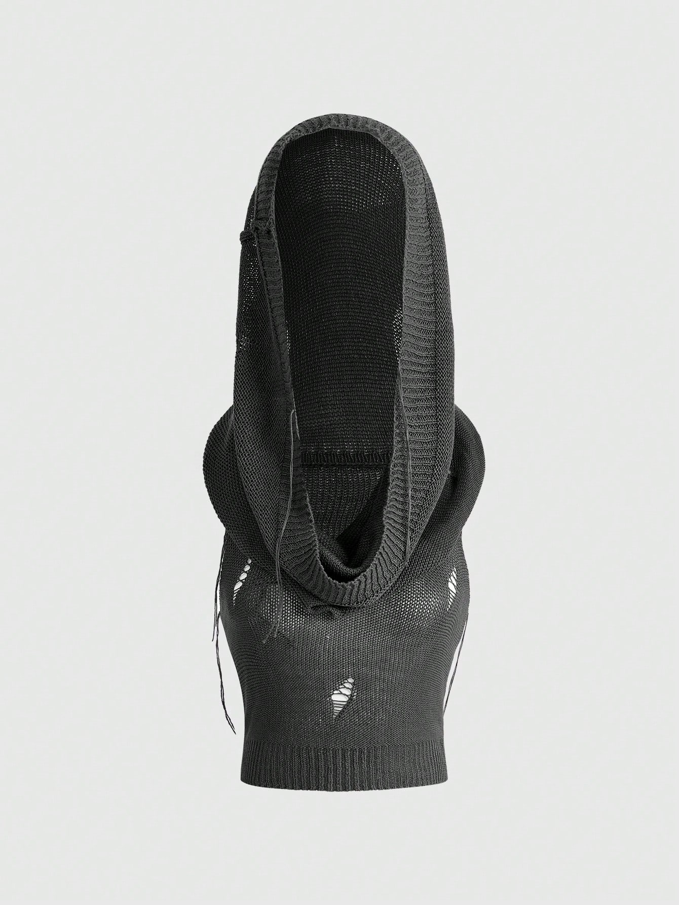 Grunge Punk Top con capucha sin mangas tejido para mujer en unicolor para uso diario y sencillo