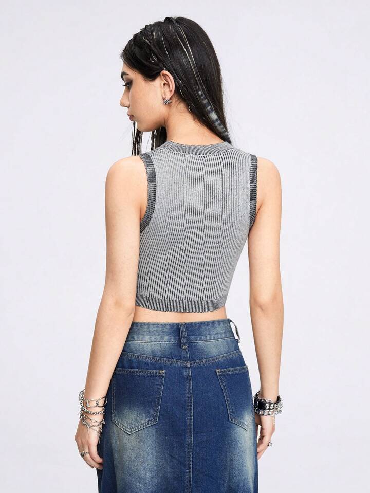 Grunge Punk Blusa Sin Mangas De Punto Para Mujer De Primavera/verano Con Detalles De Letra Y Pedrería