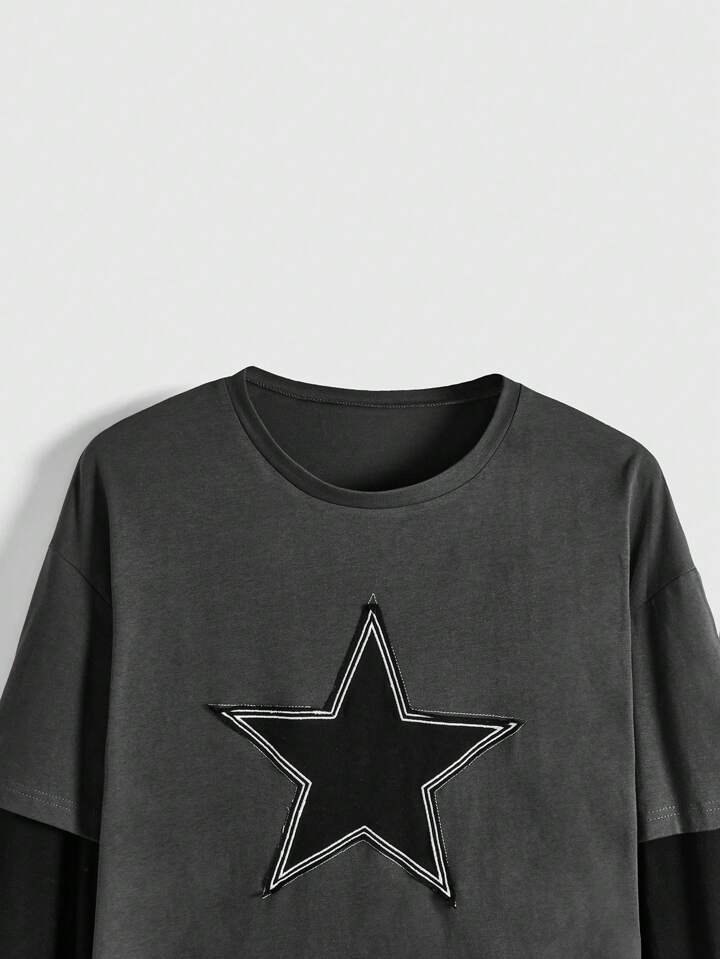 Grunge Punk Camiseta 2 en 1 con parche de estrella para mujeres, escolar