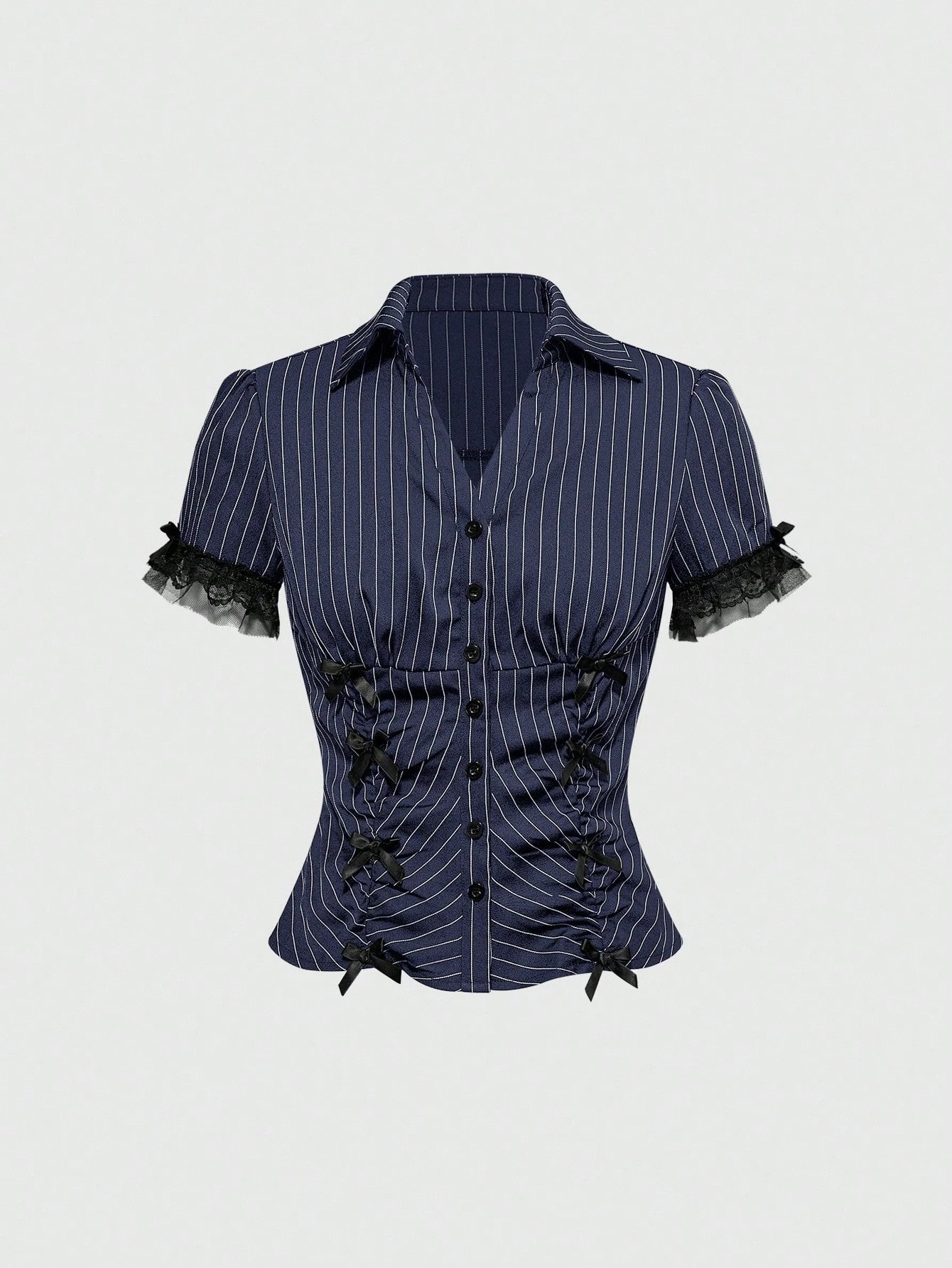 Grunge Punk Blusa de mujer de manga corta con cintura ajustada, parches de encaje y rayas